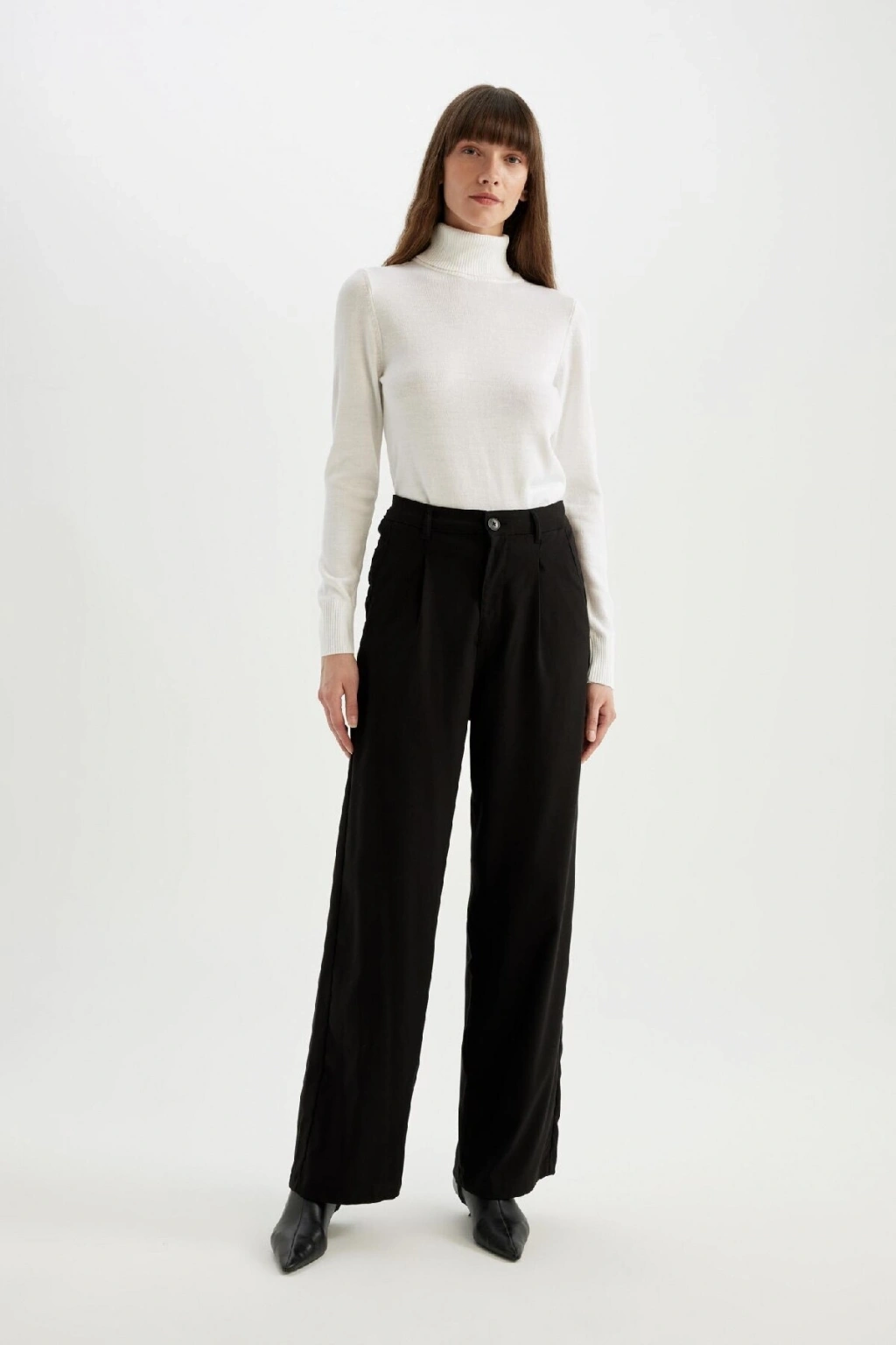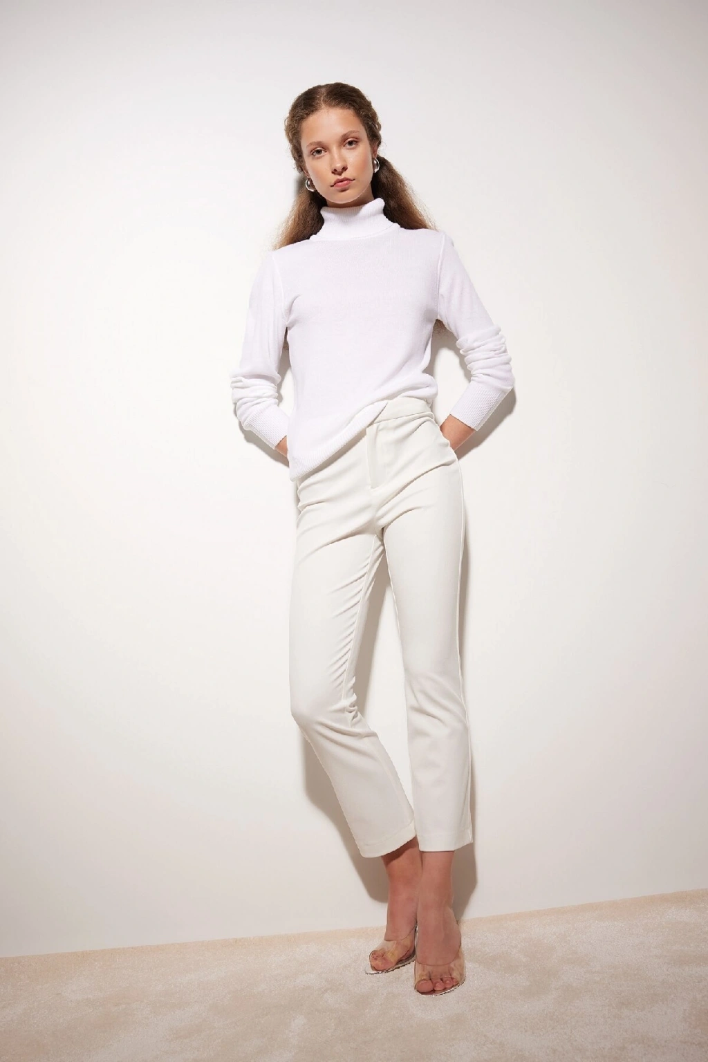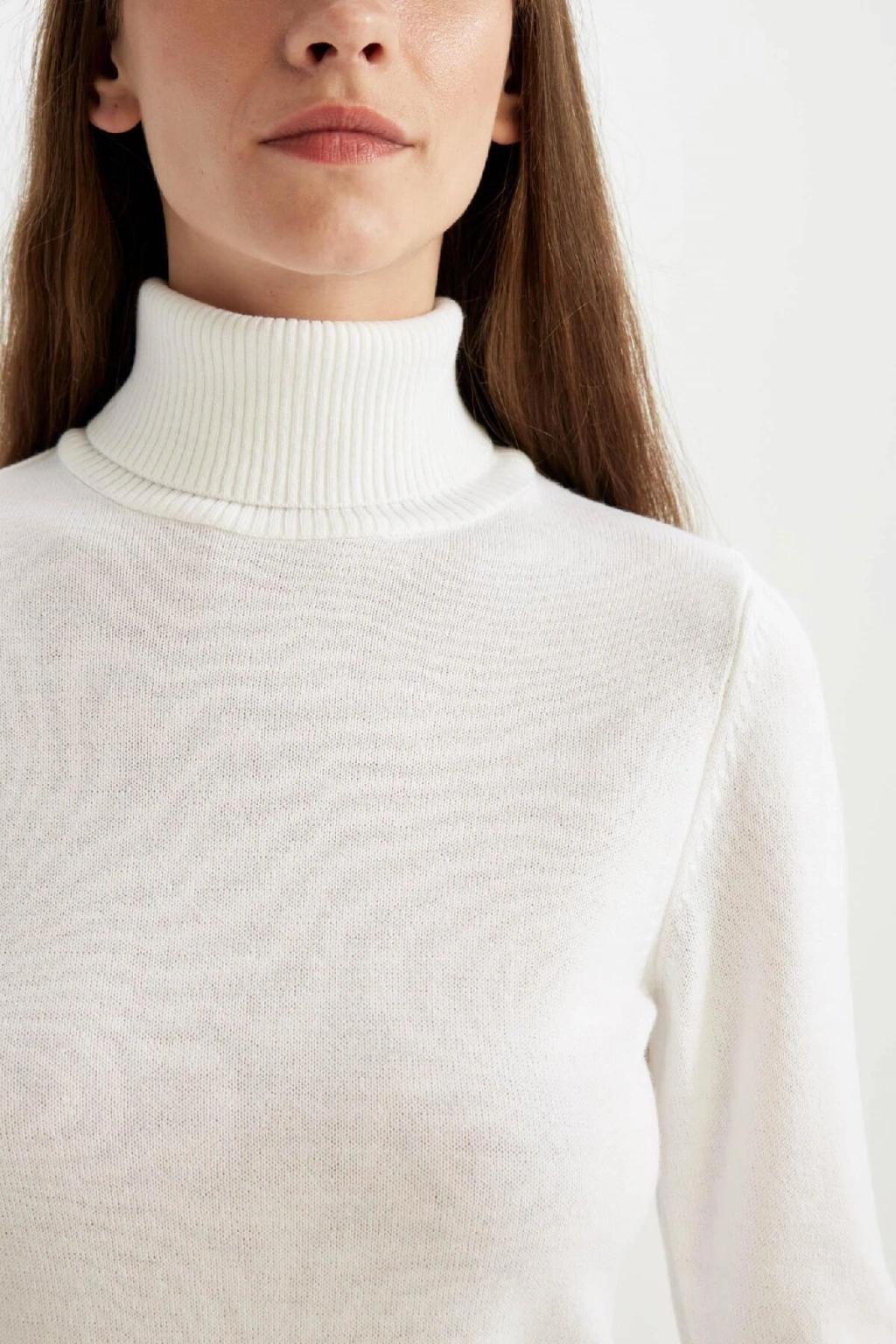 Regular Fit Yumuşak Dokulu Balıkçı Yaka Basic Düz Triko Kazak H1651az24wn Beyaz