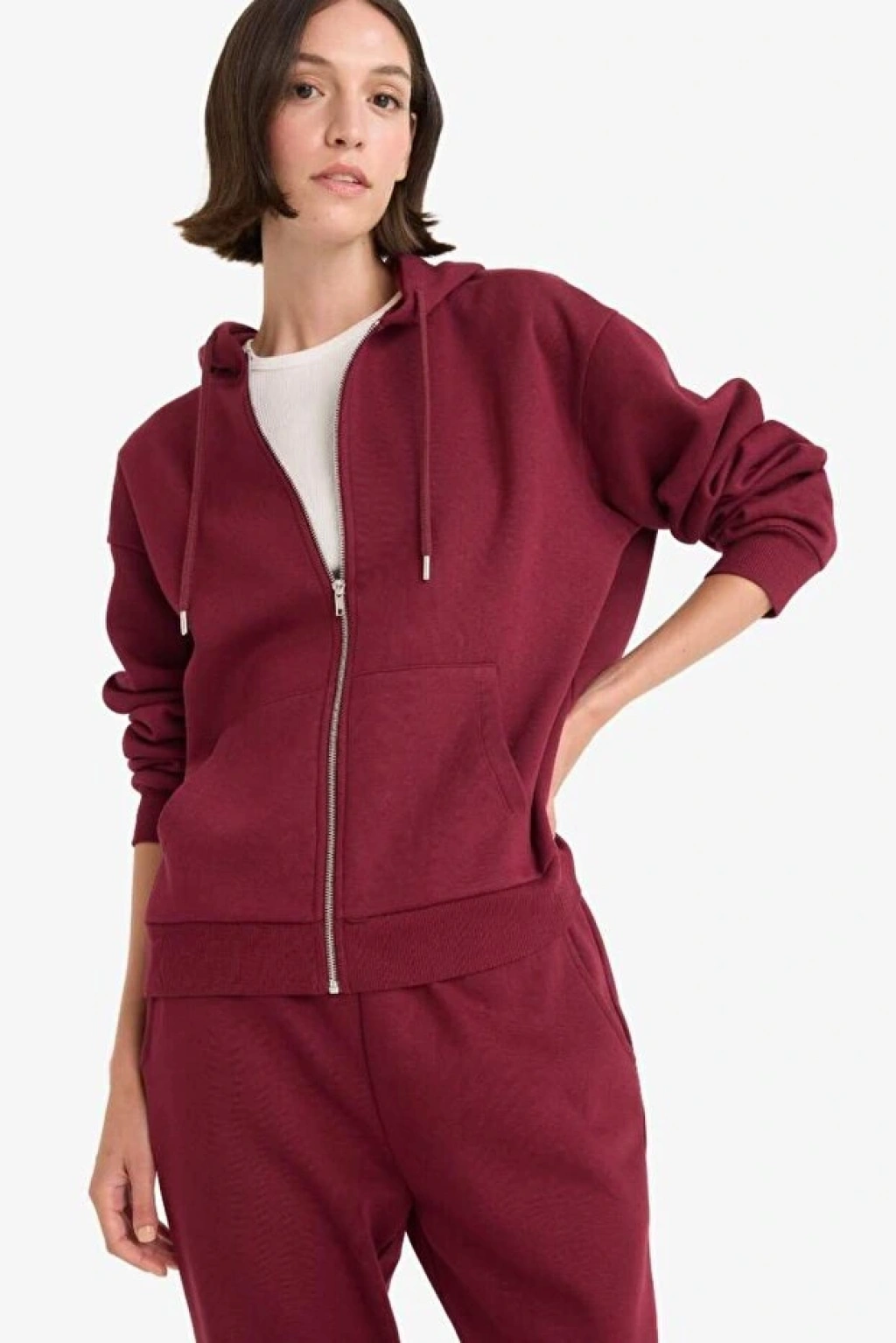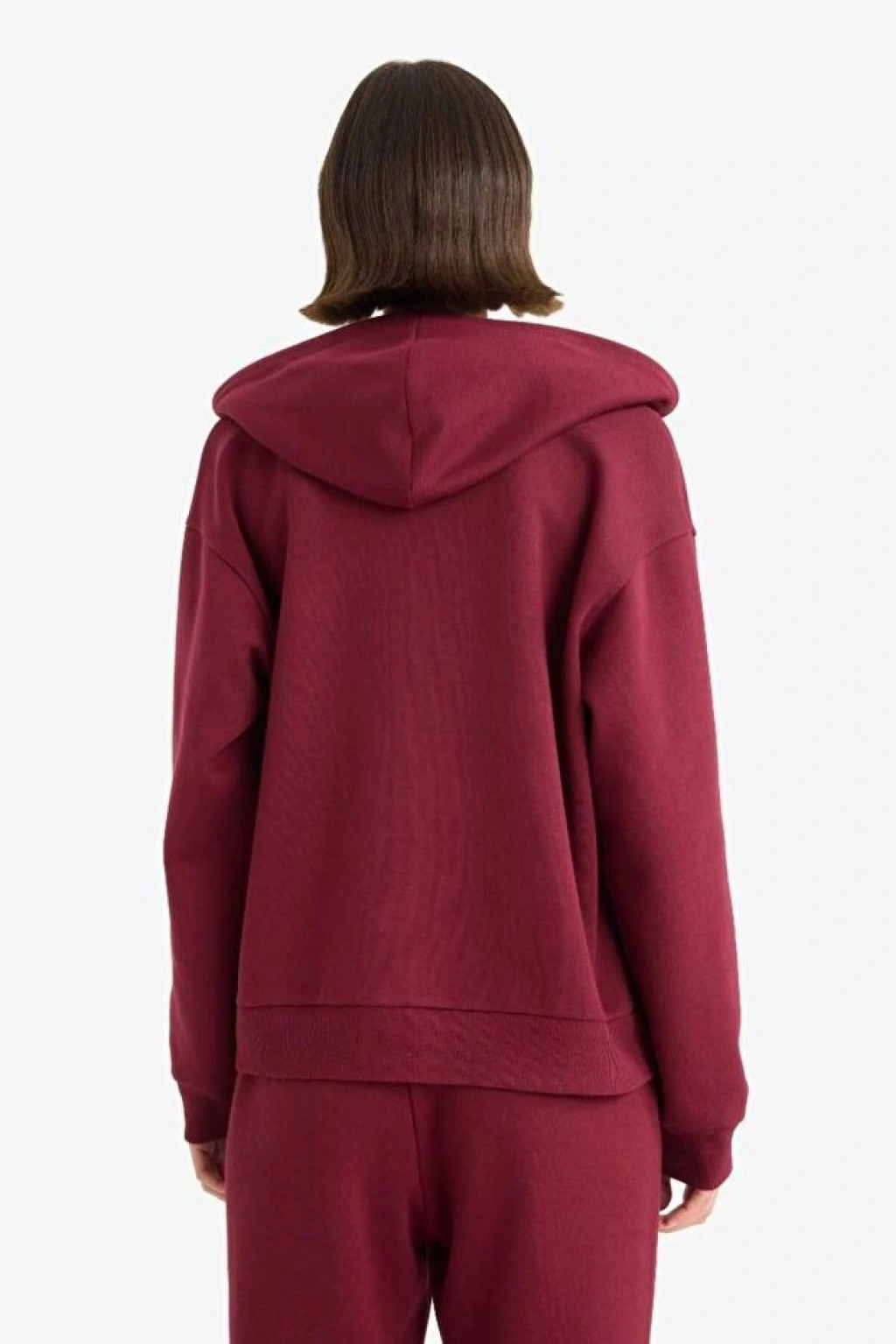 Relax Fit Kapüşonlu Basic Düz Kalın Fermuarlı Sweatshirt