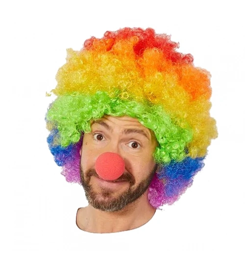 Rengarenk Gökkuşağı Afro Bonus Peruk ve Kırmızı Renk Sünger Burun 120 gr