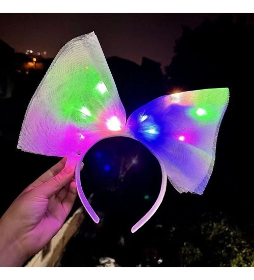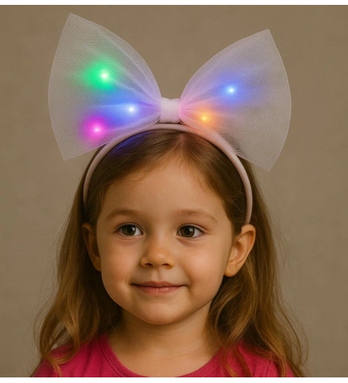 Rengarenk Led Işıklı Fiyonk Şekilli Tül Parti Tacı Beyaz Renk 25x25 cm