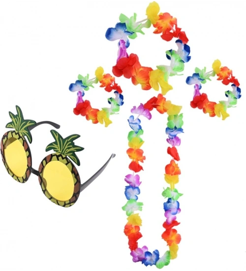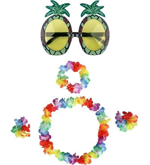 Renkli Ananas Gözlük, Taç, Kolye ve Bileklik Seti