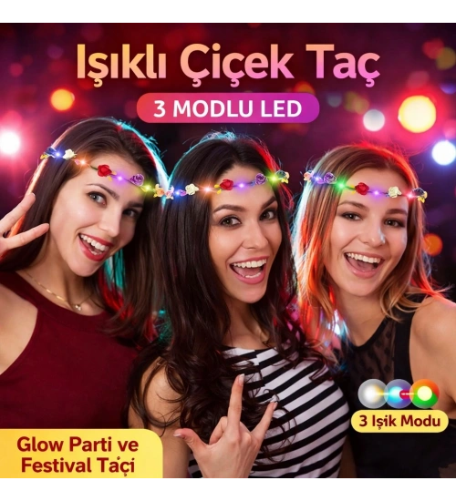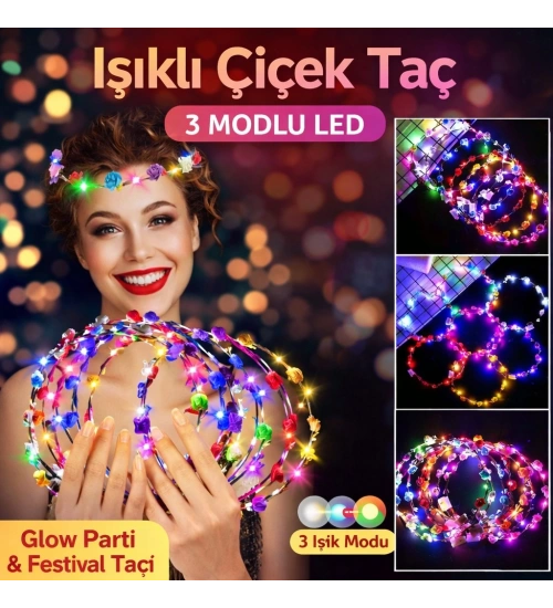 Renkli LED Çiçek Taç – 3 Işık Modlu Parti Tacı