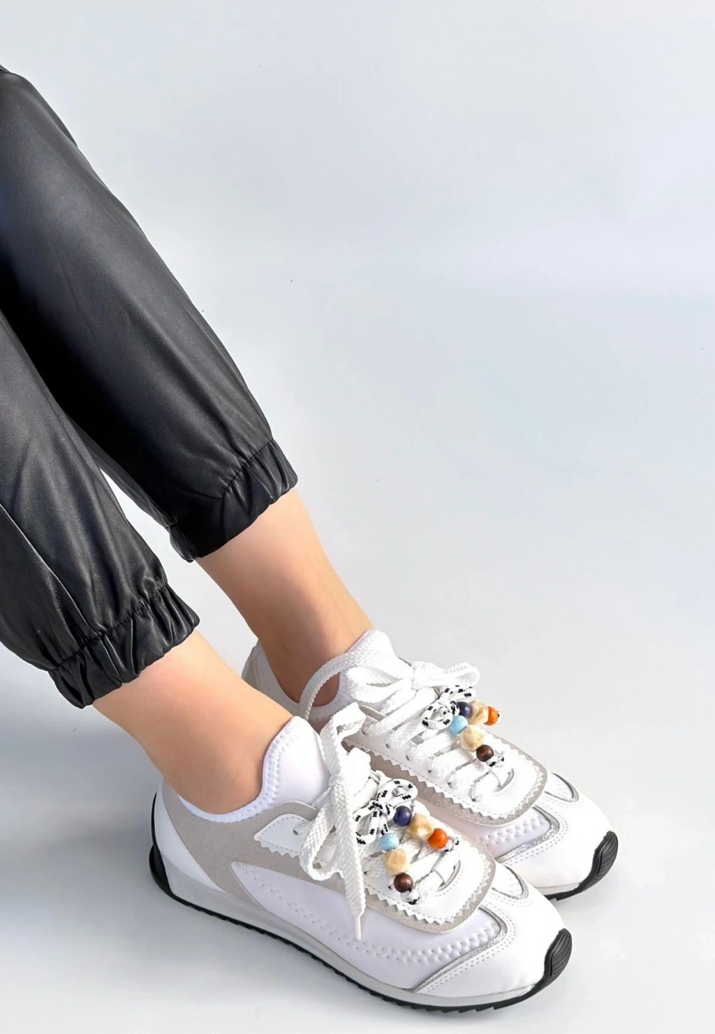 Junda Beyaz Cilt Bağcıklı Spor Ayakkabı