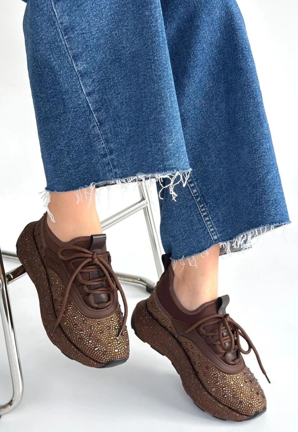 Sier Kahverengi Süet Bağcıklı Spor Ayakkabı