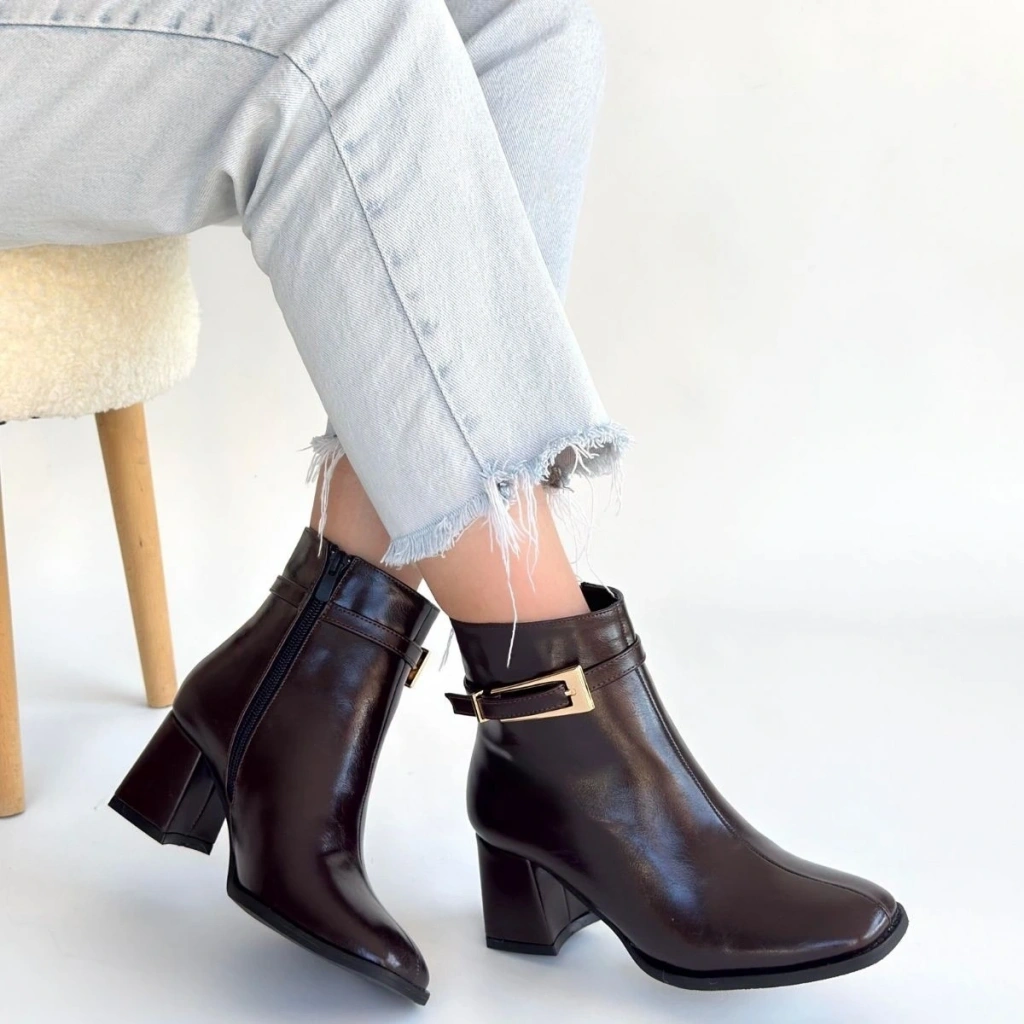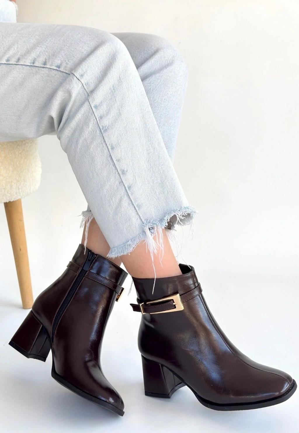 Verena Acı Kahve Cilt Topuklu Streç Bot