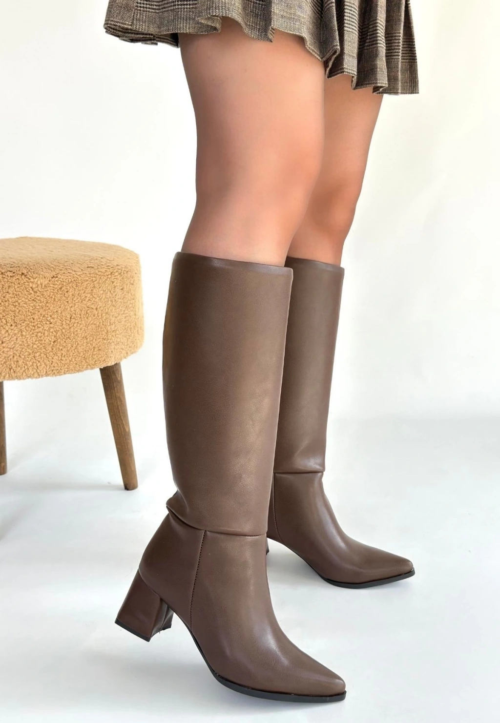 Tiyan Kahverengi Cilt Topuklu Çizme