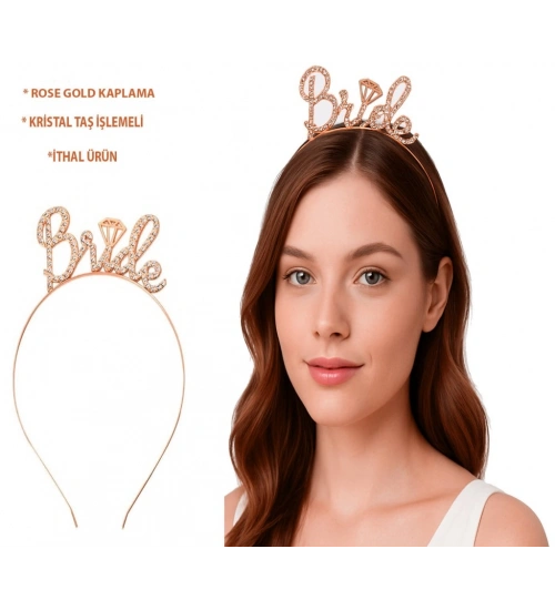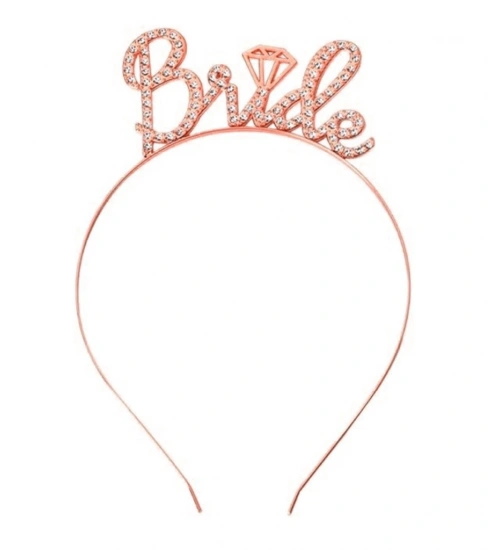 Rose Gold Renkli Taşlı “Bride” Gelin Tacı – El Yazısı Yazı Tipiyle