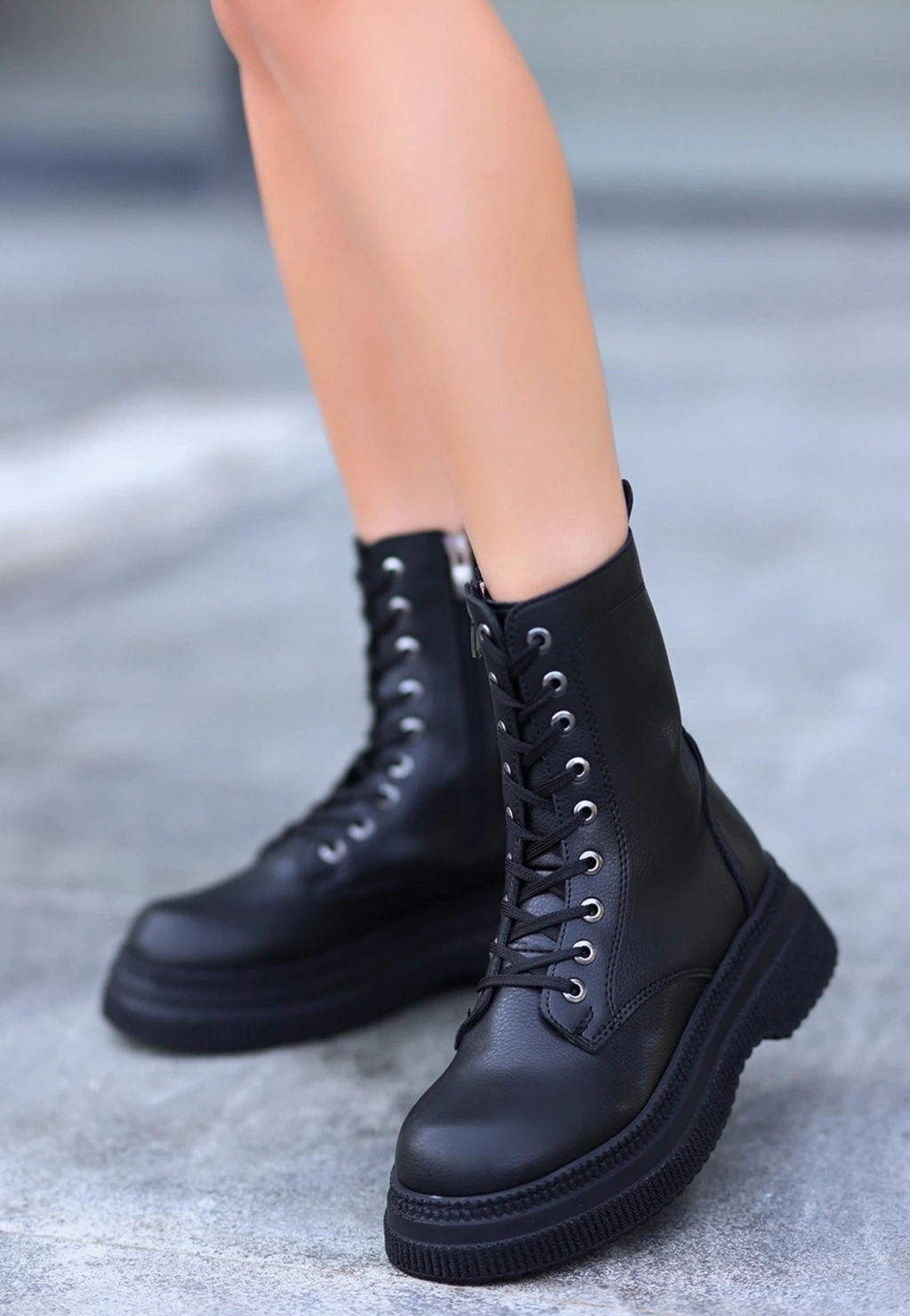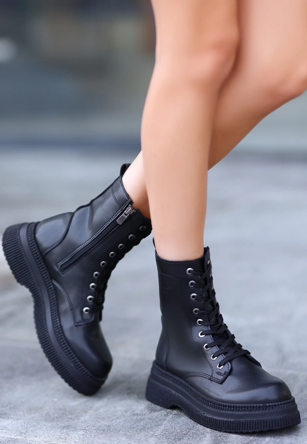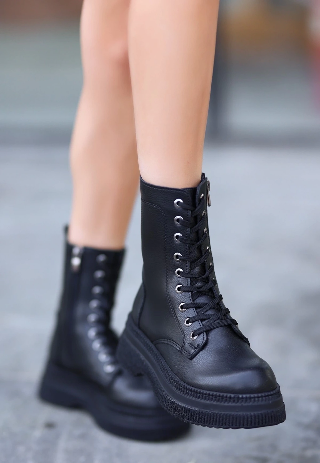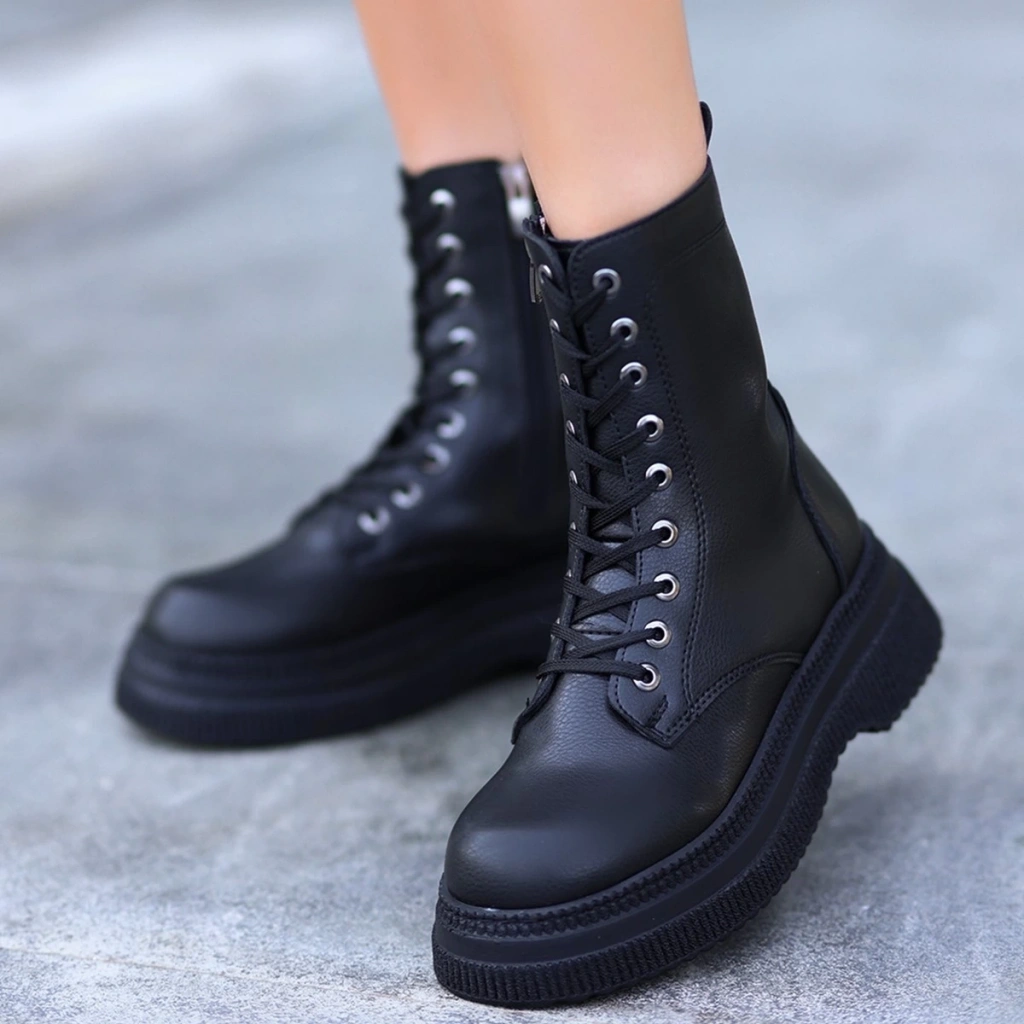 Jones Siyah Cilt Bağcıklı Topuklu Bot