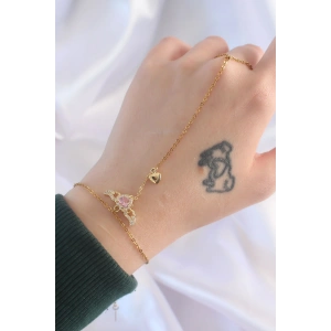 Pirinç Renkli Kalpli Zirkon Taşlı Y Model Gold Renk Kadın Şahmeran