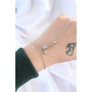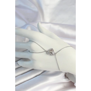 316L Çelik Zincirli Gümüş Renk Kalp Figürlü Zirkon Taşlı Şahmeran