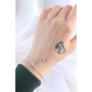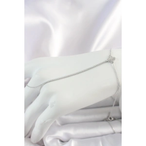 Pirinç Gümüş Renk Su Yolu Zirkon Taşlı İşlemeli Yonca Model Kadın Şahmeran