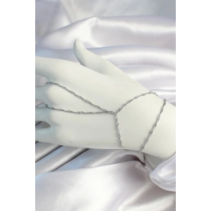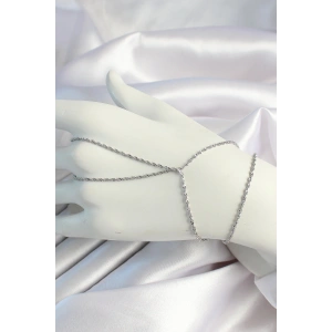 Pirinç Zirkon Taşlı Ezme Zincir Model Gümüş Renk Kadın Şahmeran