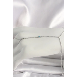 Pirinç Gümüş Renk Su Yolu Zirkon Taşlı Mavi Taş Detaylı Kadın Şahmeran