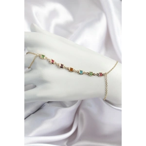 Pirinç Renkli Zirkon Taşlı Dikdörtgen Model Gold Renk Kadın Şahmeran