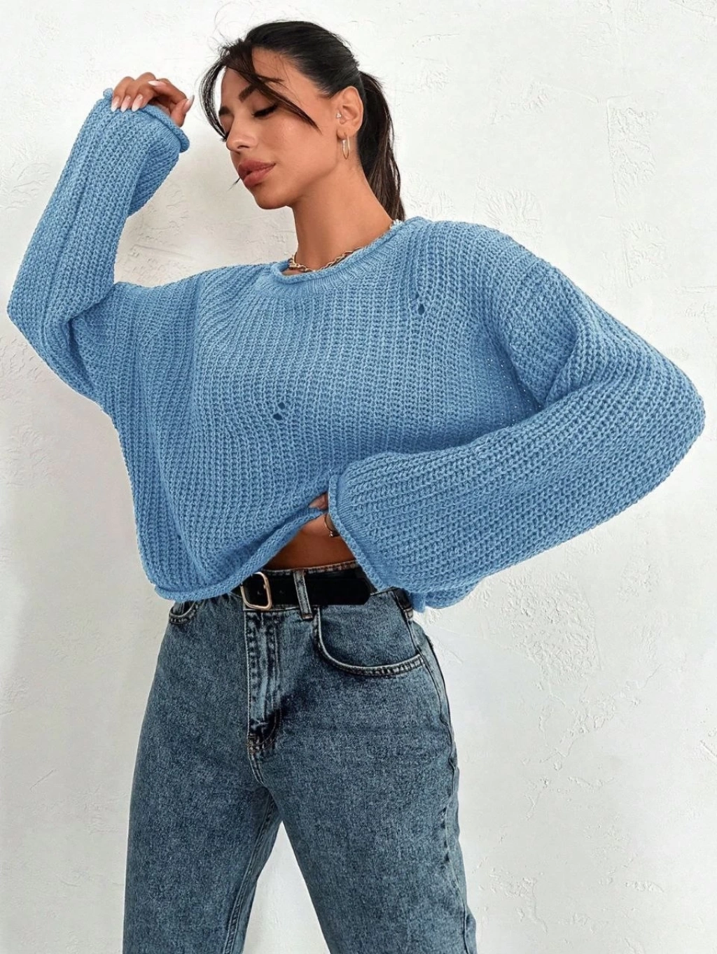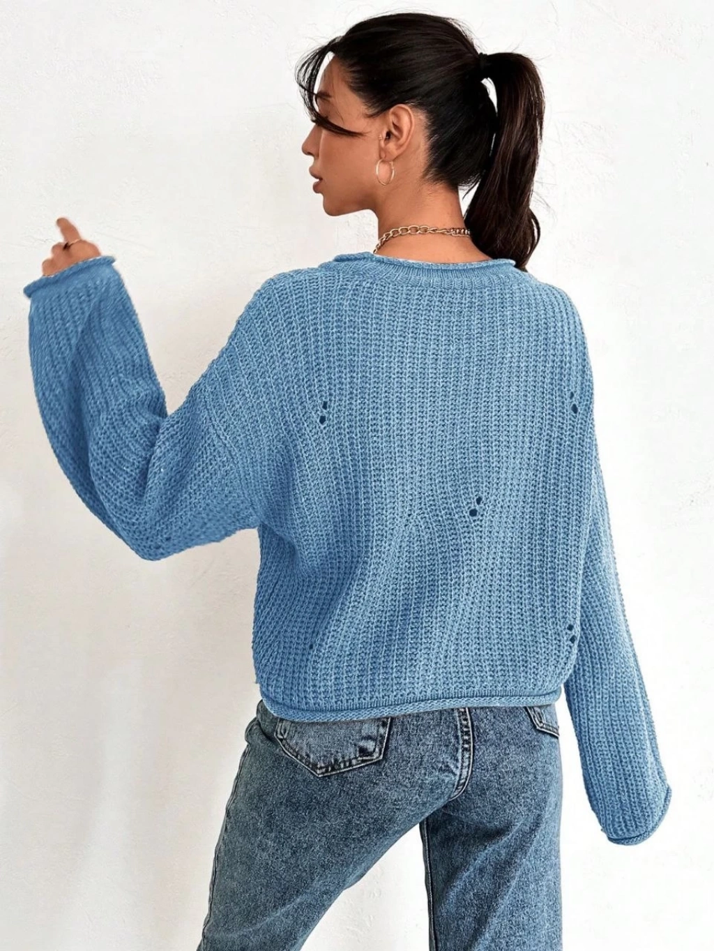 Salaş delik detaylı kazak pembe