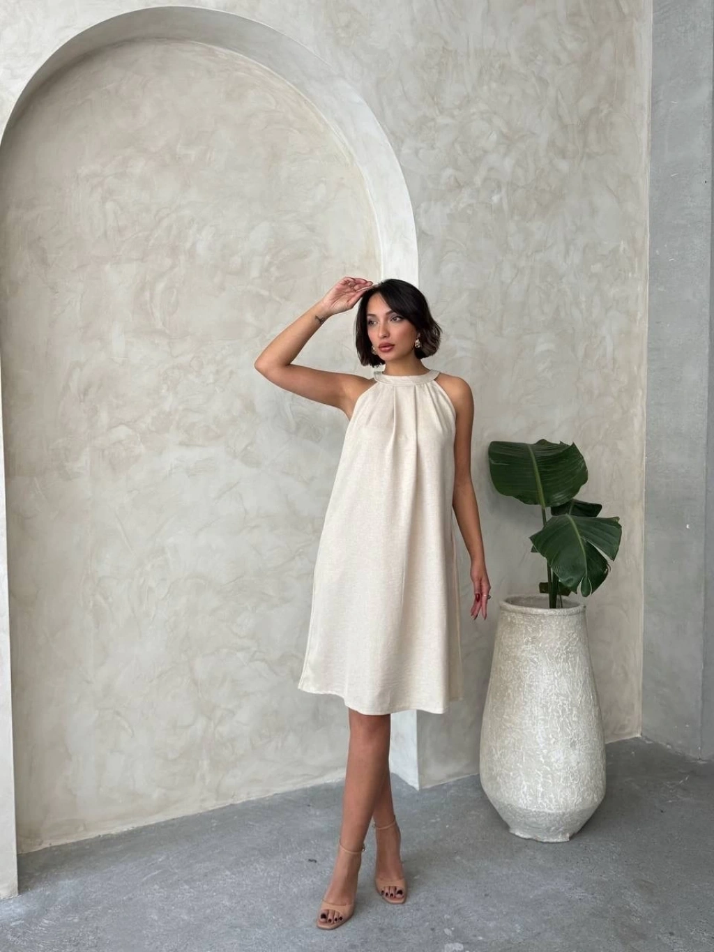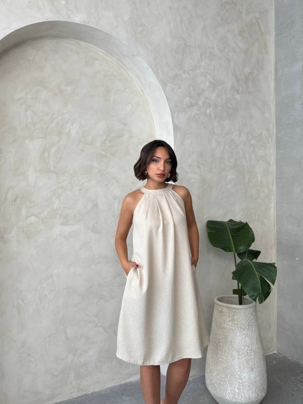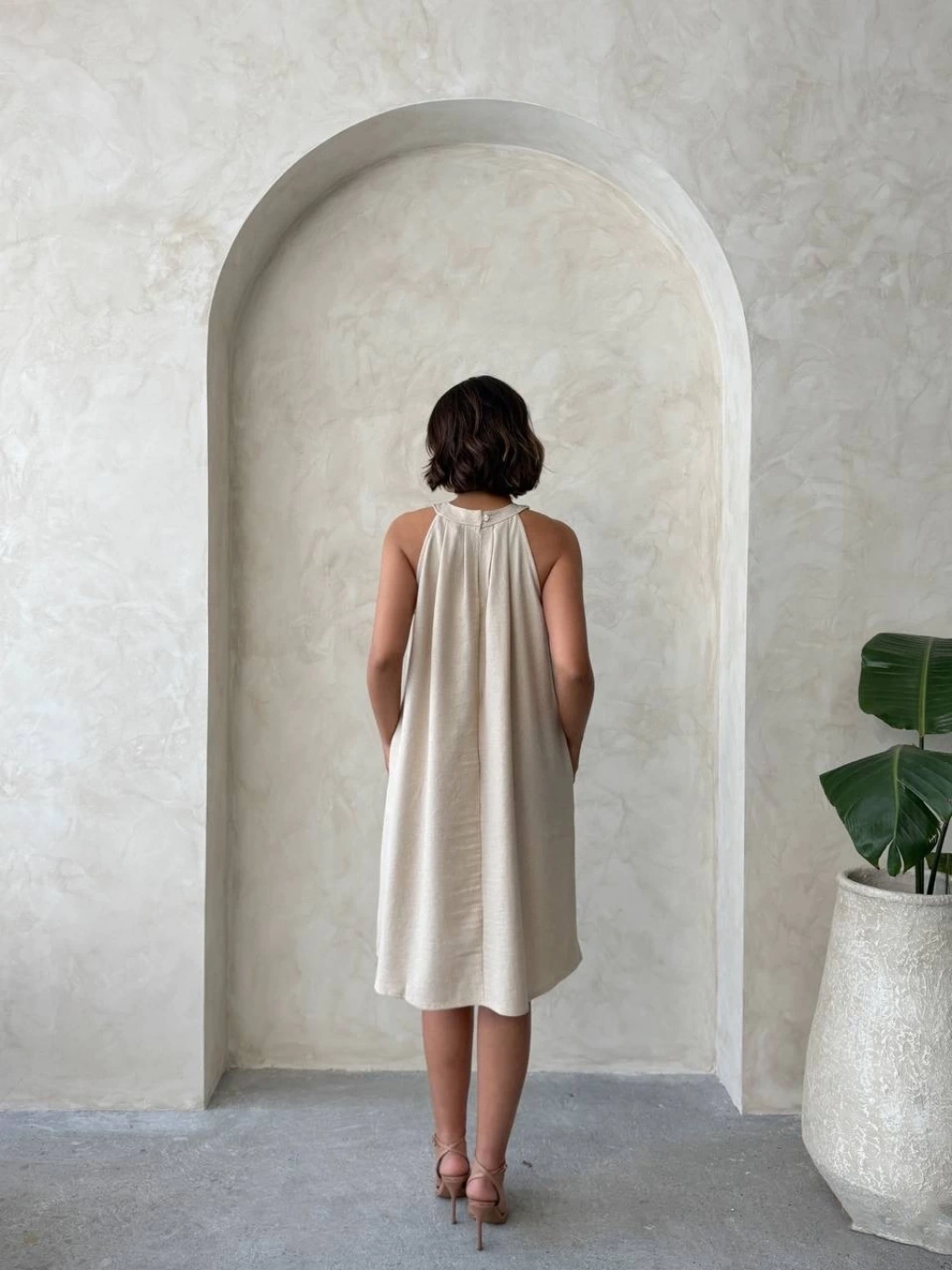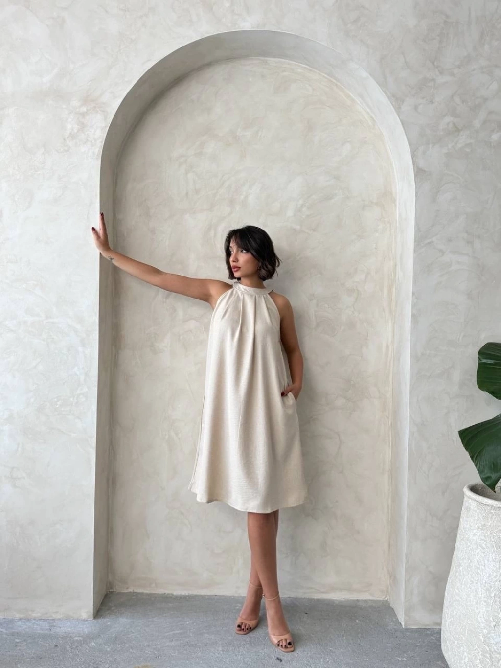 Fermuar detaylı fitilli şardonlu elbise bej a3178