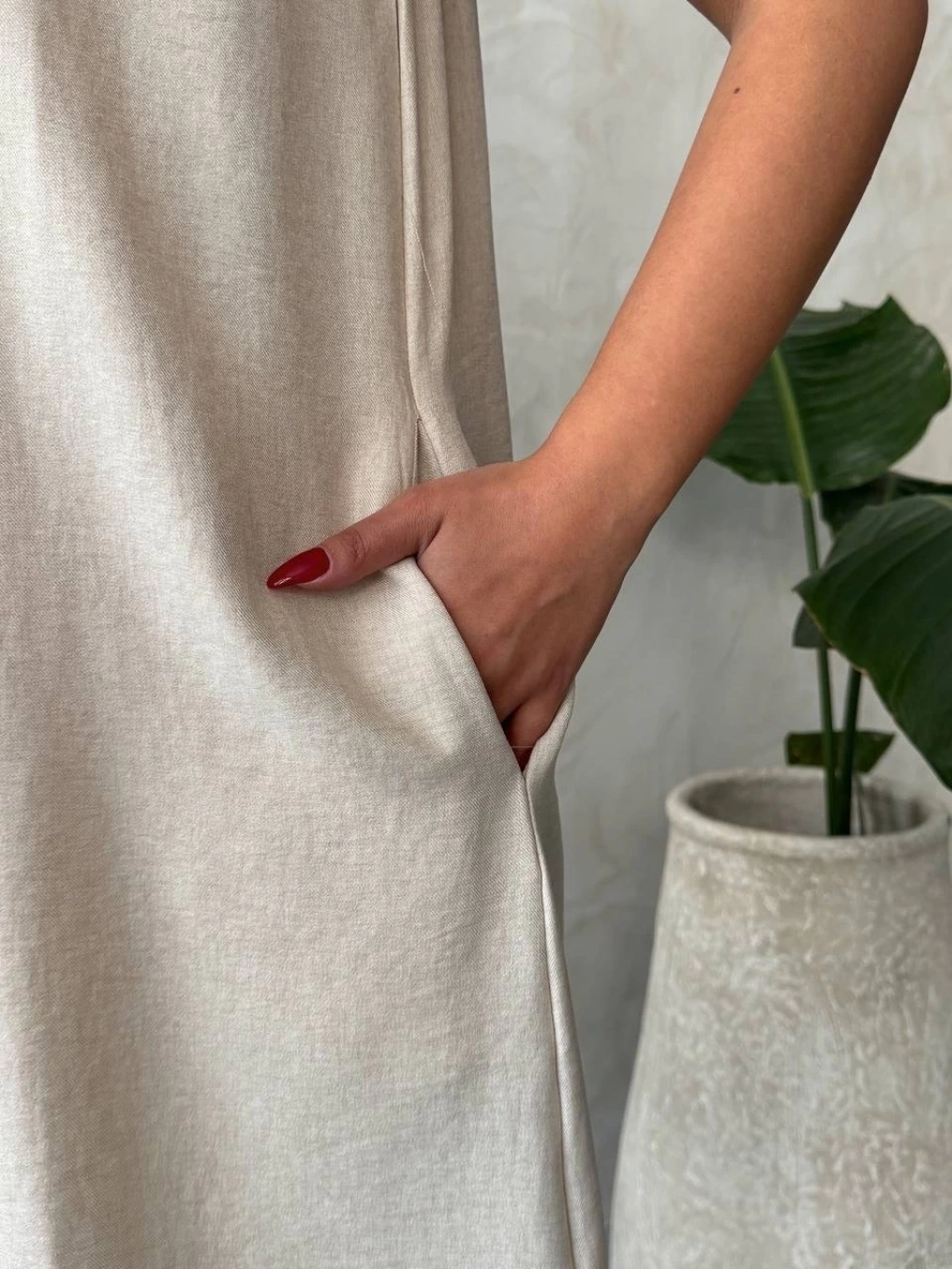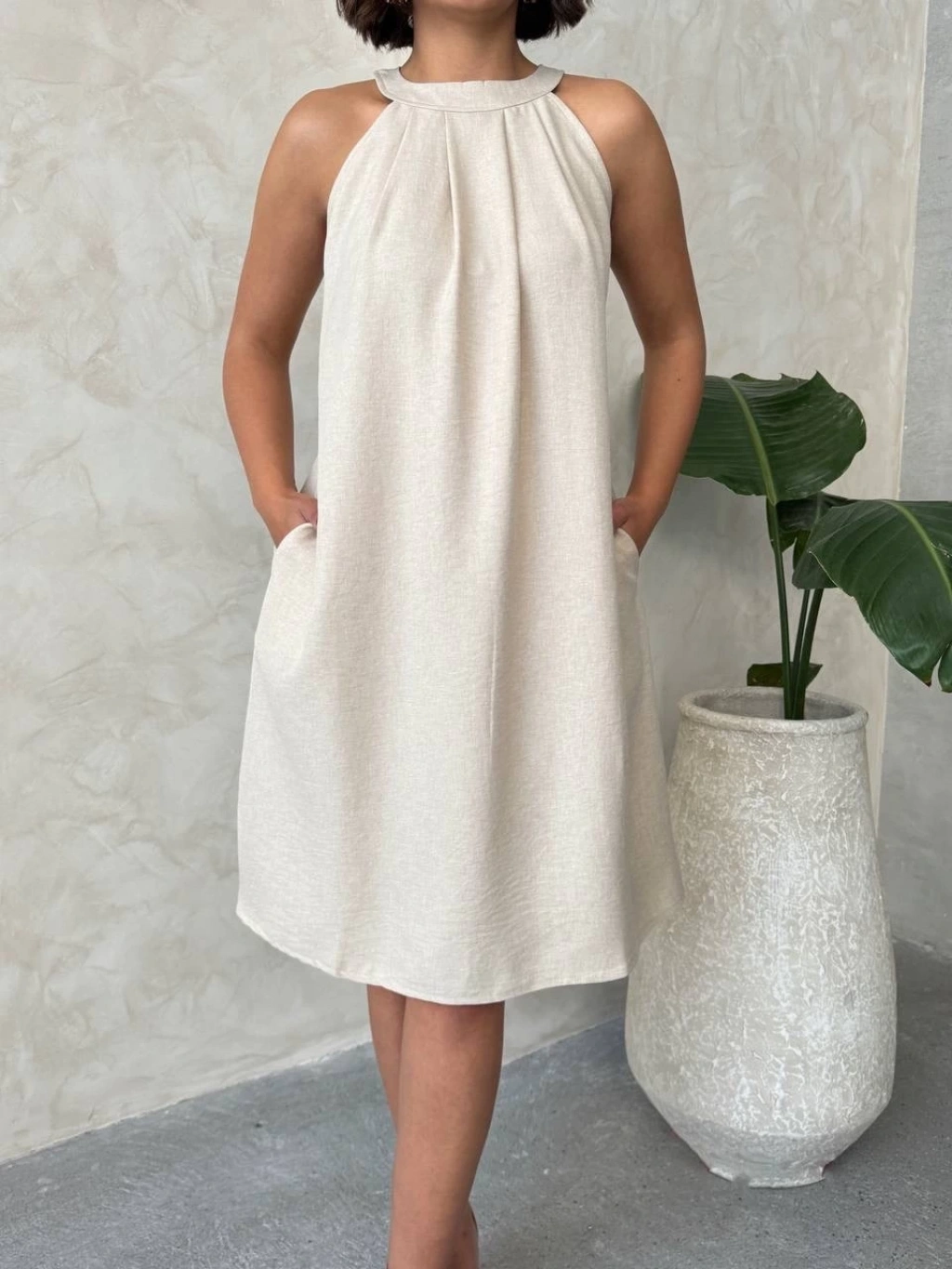 Askılı ch kumaş düğmeli elbise pudrabeyaz h265007