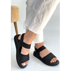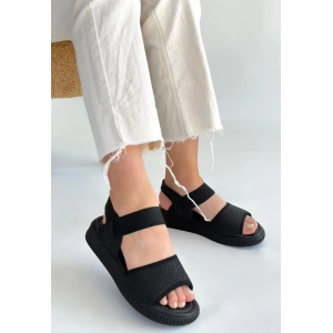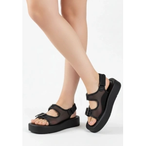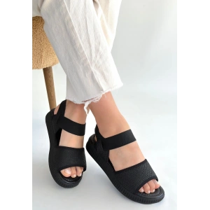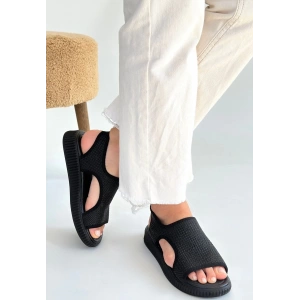 Saide Siyah Cilt Cırt Cırtlı Sandalet