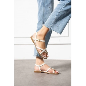 Sinna Gümüş Cilt Tül Detaylı Sandalet