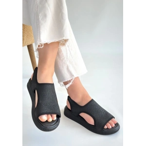 Sinna Siyah Cilt Tül Detaylı Sandalet
