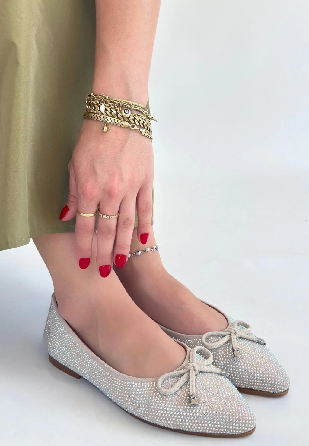 Lossa Bej Süet Kemerli Babet Ayakkabı