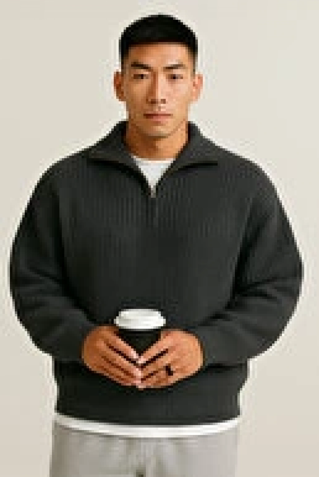 Erkek Polo Yaka Yarım Fermuarlı Regular Fit Kalıp Basic Düz Triko Kazak