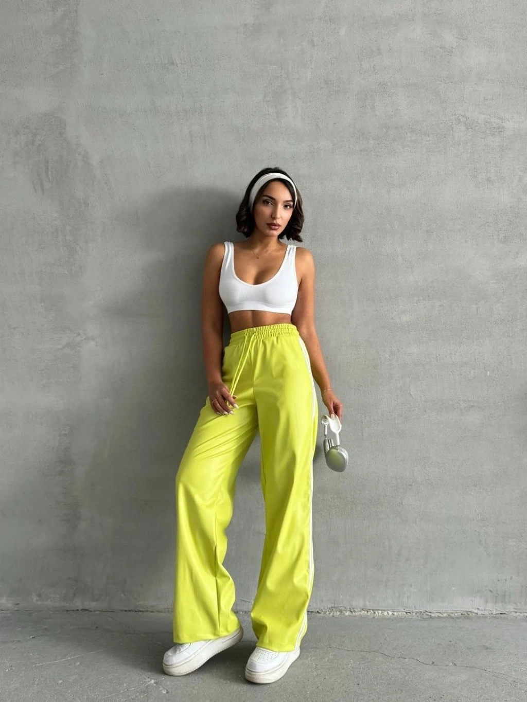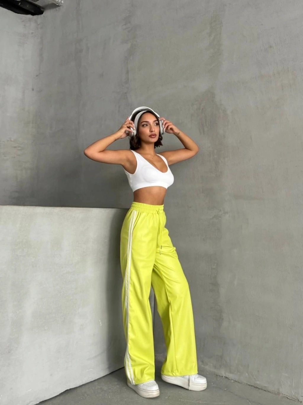 İspanyol yırtmaçlı paça deri pantolon siyah hn