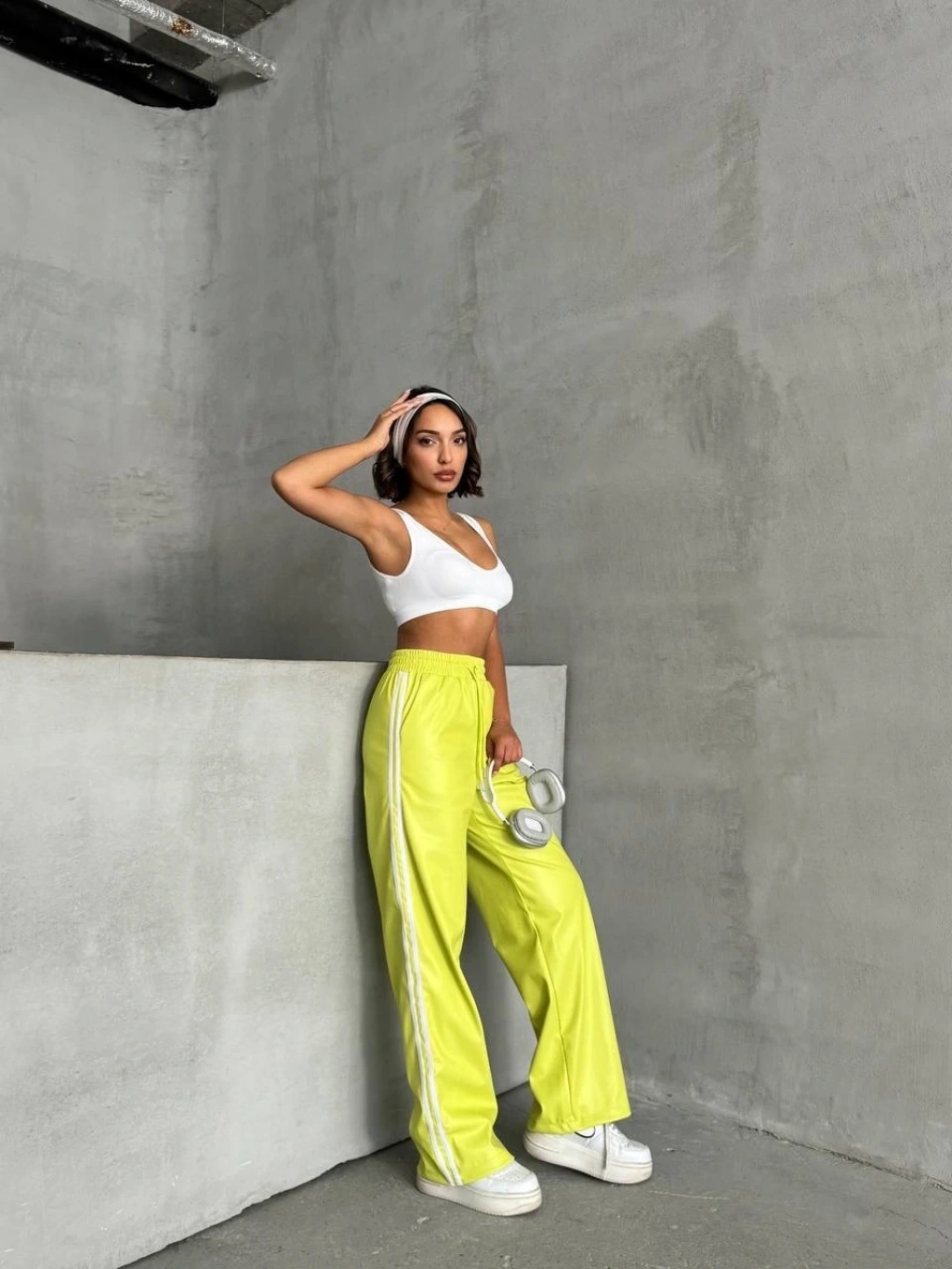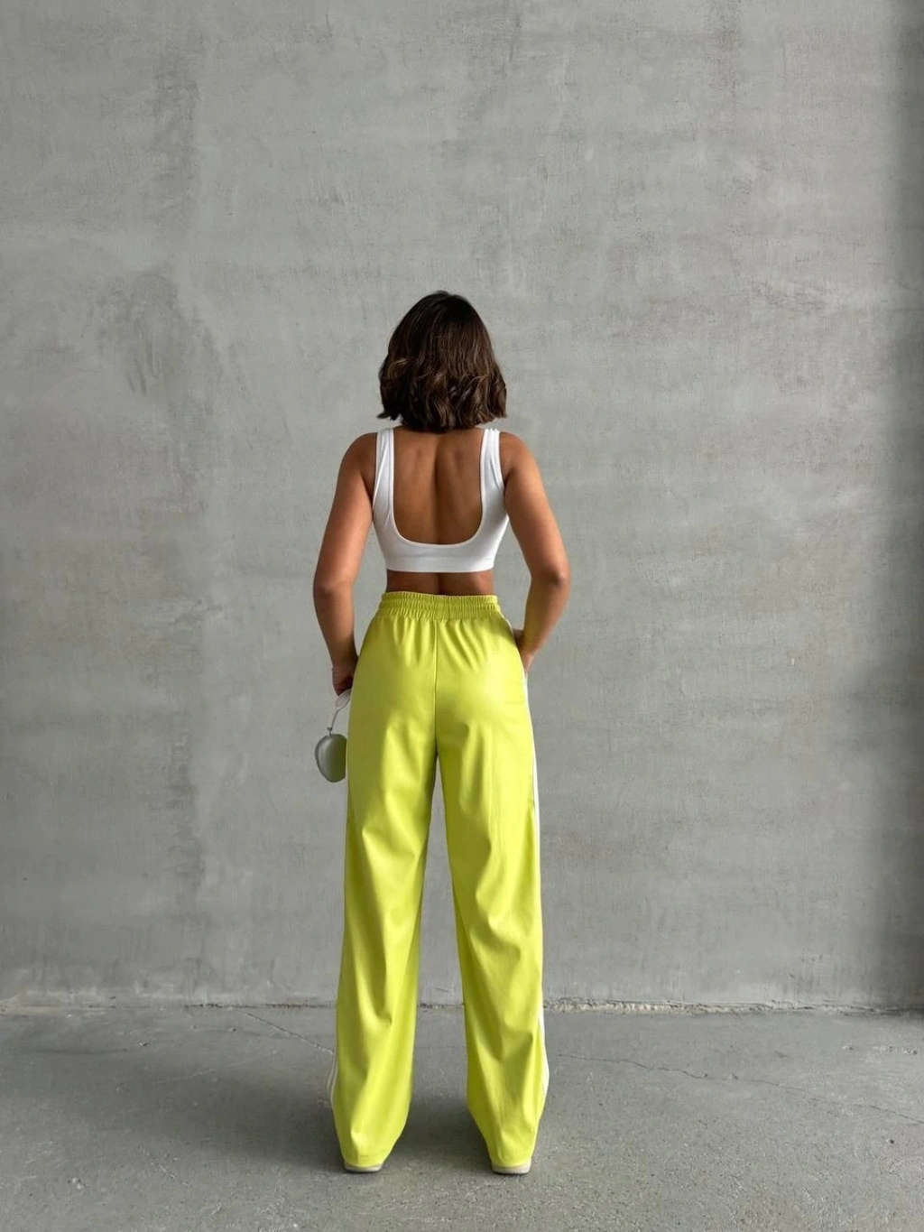 İspanyol yırtmaçlı paça deri pantolon bej hn