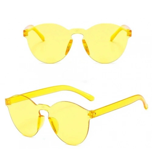 Sert Mika Oval Şekilli Çerçevesiz Sarı Gözlük Retro Parti 5x14 cm