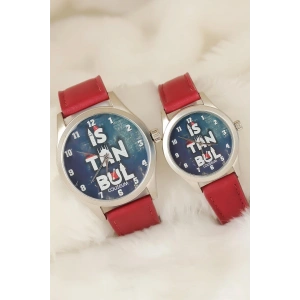Bordo Renk Deri Kordonlu İstanbul Tasarımlı Sevgili Saatleri