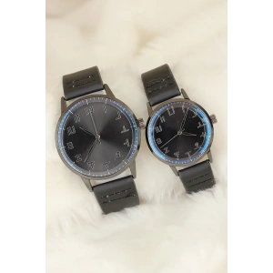 Siyah Deri Kordonlu Füme Renk Metal Kasa Sevgili Saatleri