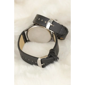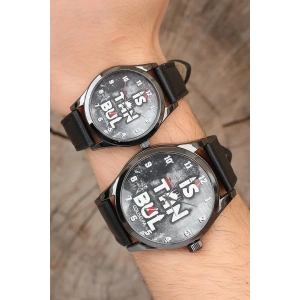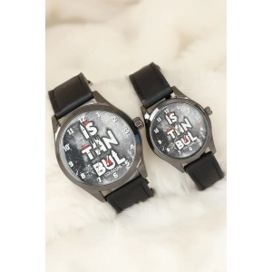 Siyah Renk Deri Kordonlu İstanbul Tasarımlı Sevgili Saatleri