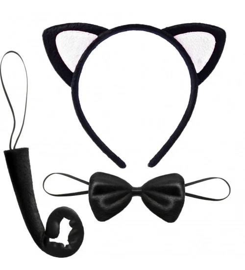 Sevimli Kedi Kostüm Seti Kulak Papyon Kuyruk Beyaz Renk