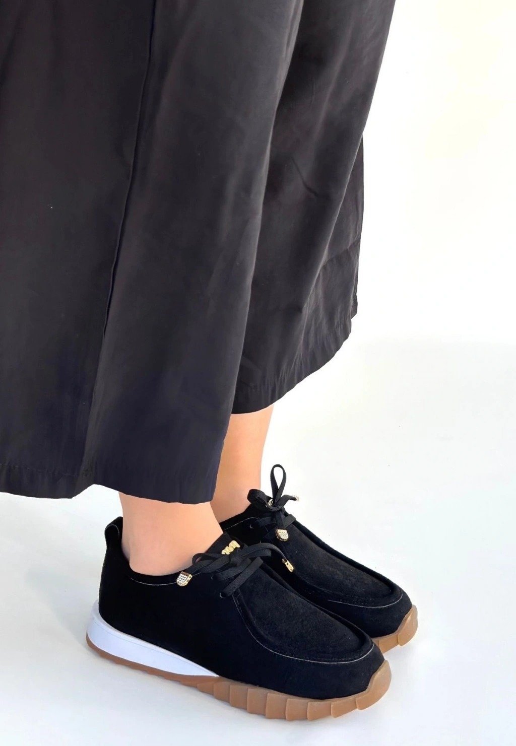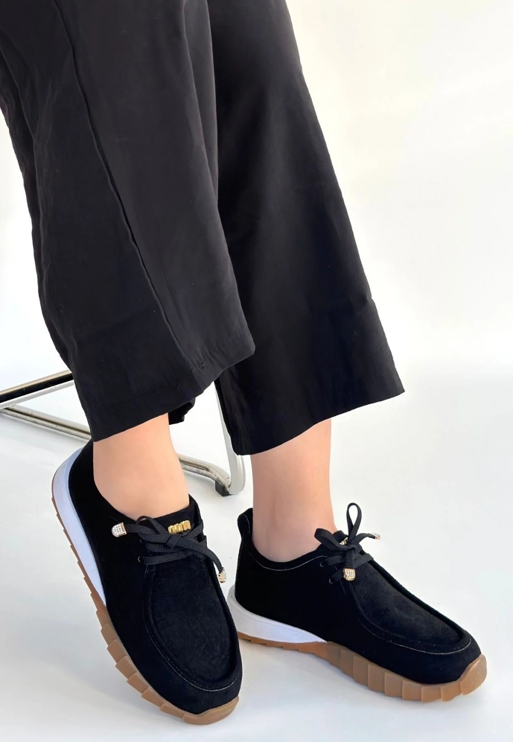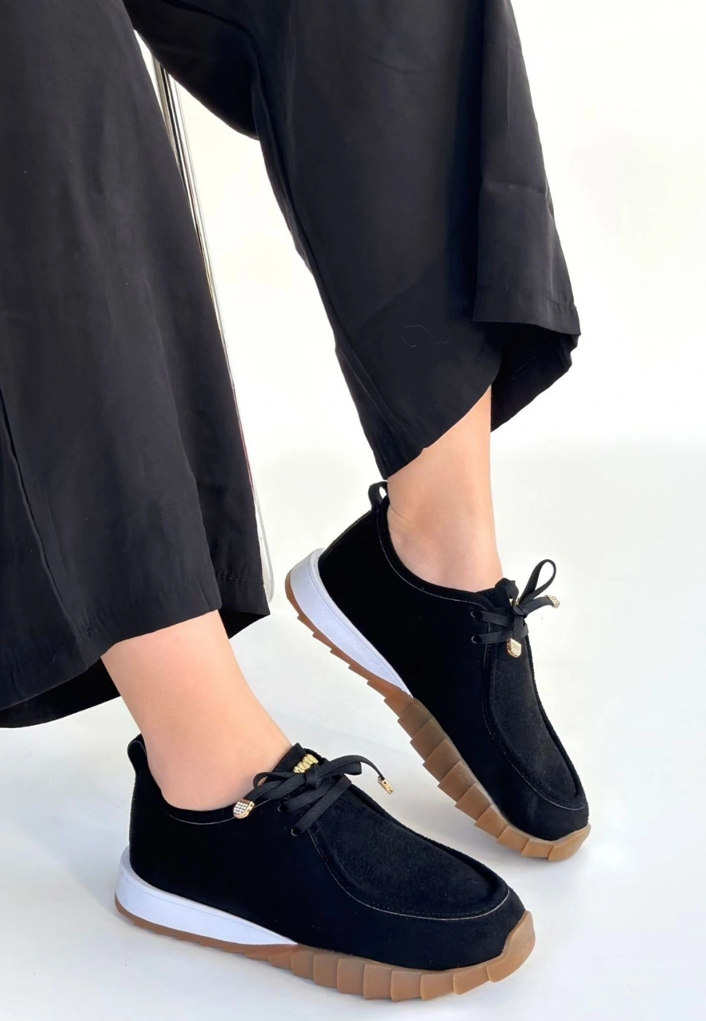 Rimay Siyah Cilt Boncuk İşlemeli Spor Ayakkabı