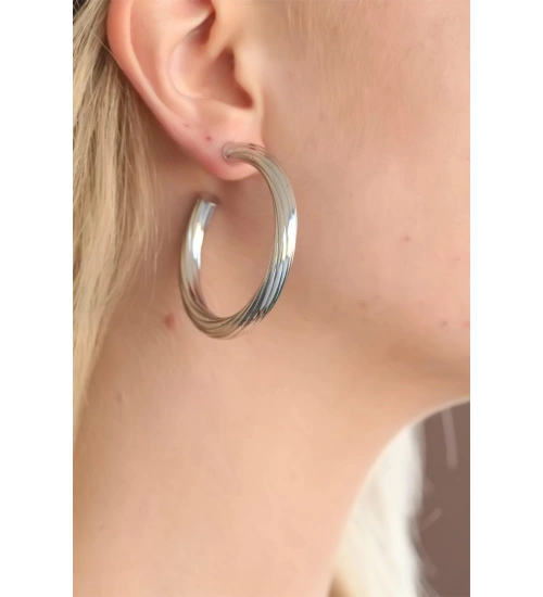 Silver Renk Halka Metal Bayan Küpe Tasarımı ile zarif şıklığa ulaşacaksınız.