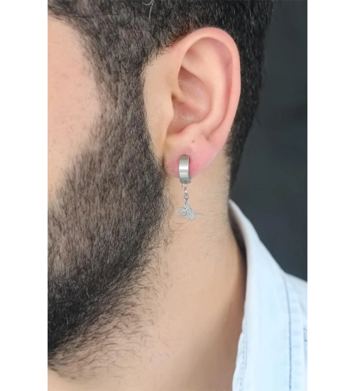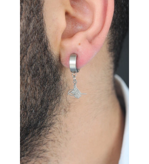 Yeni sezona Silver Renk Kaplama Osmanlı Tuğra Figürlü Kıstırmalı Çelik Erkek Küpe ile çok gireceksiniz.