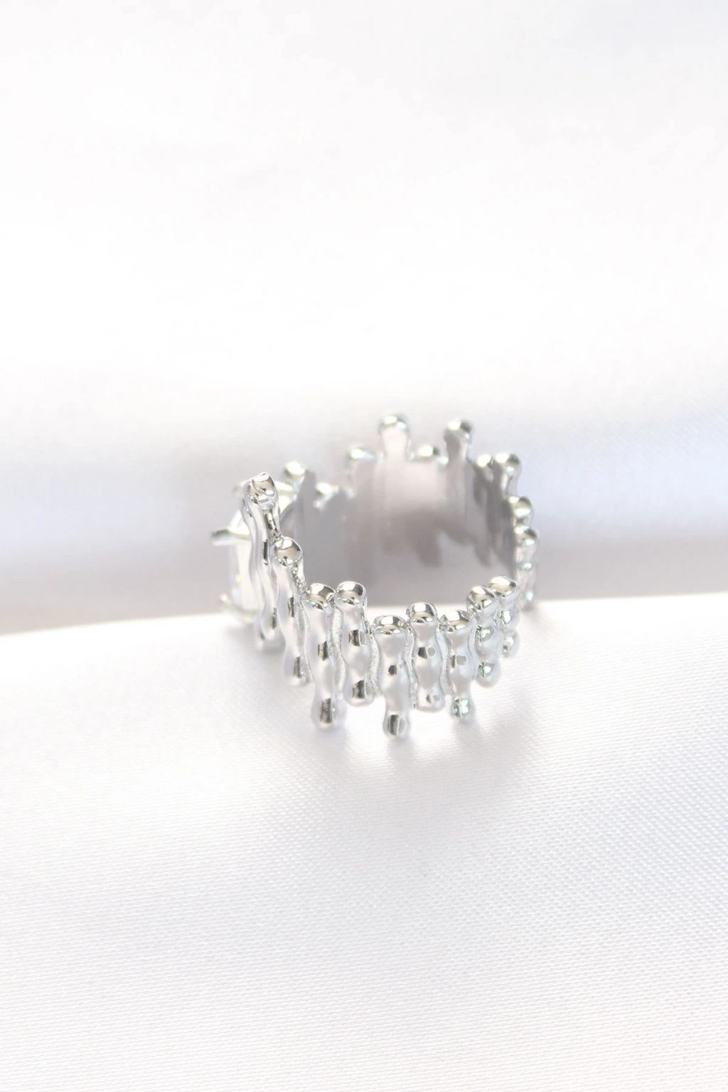 Silver Renk Tırtıklı Kalın Baget Taş Tasarım Ayarlanabilir Yüzük