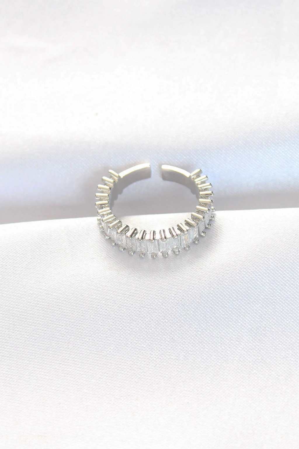 Sıralı Baget Taşlı Silver Renk Ayarlanabilir Yüzük
