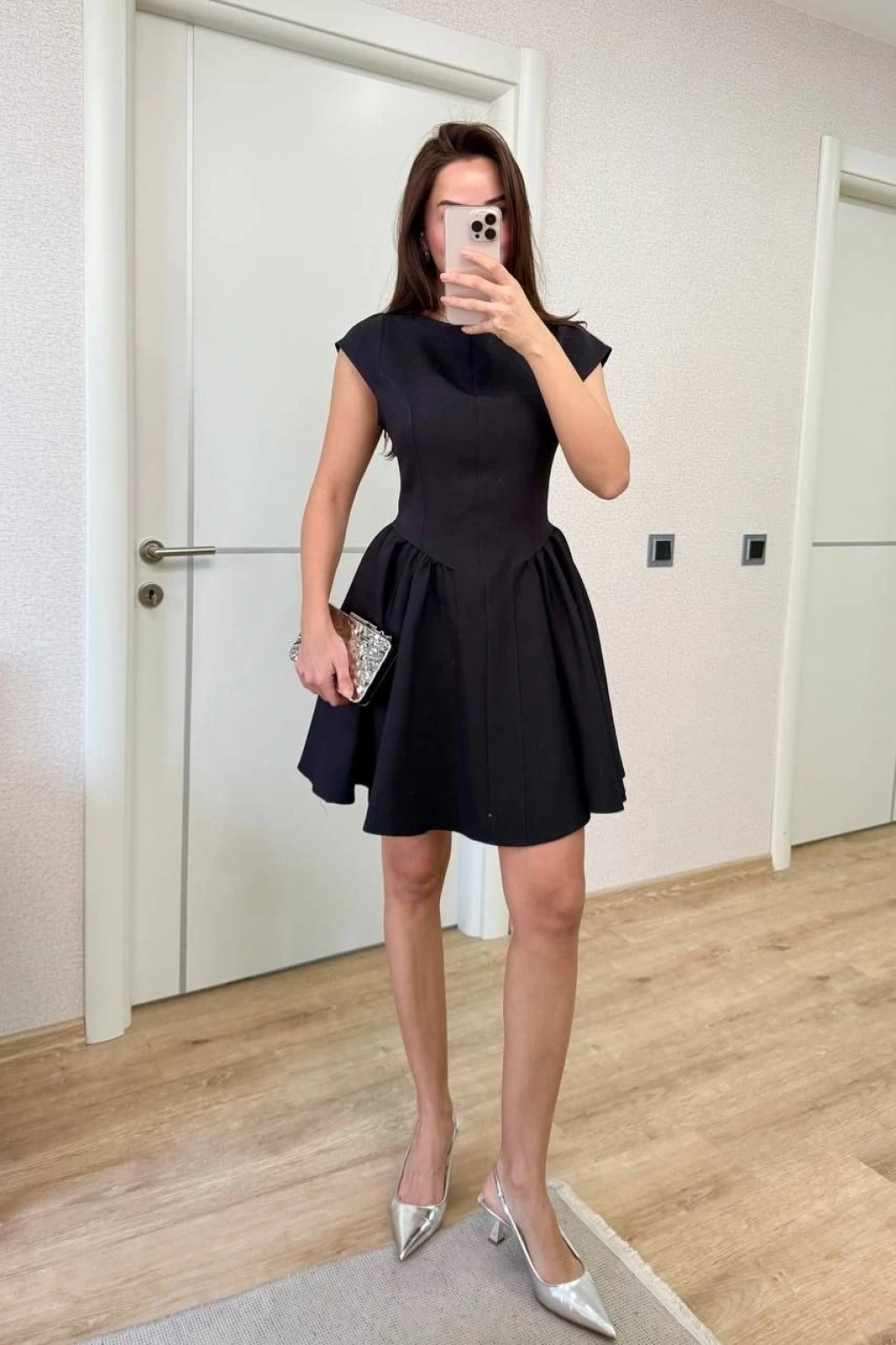 Straplez Sandy Kumaş Şortlu Prenses Etek Mini Kloş Elbise - Kırmızı