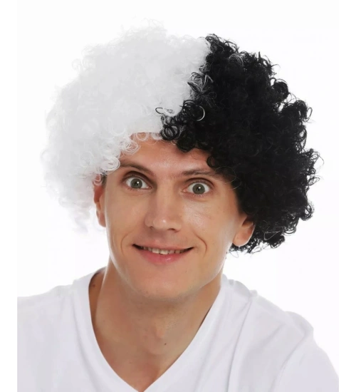 Siyah Beyaz Kıvırcık Afro Bonus Peruk Taraftar Bonus Saç