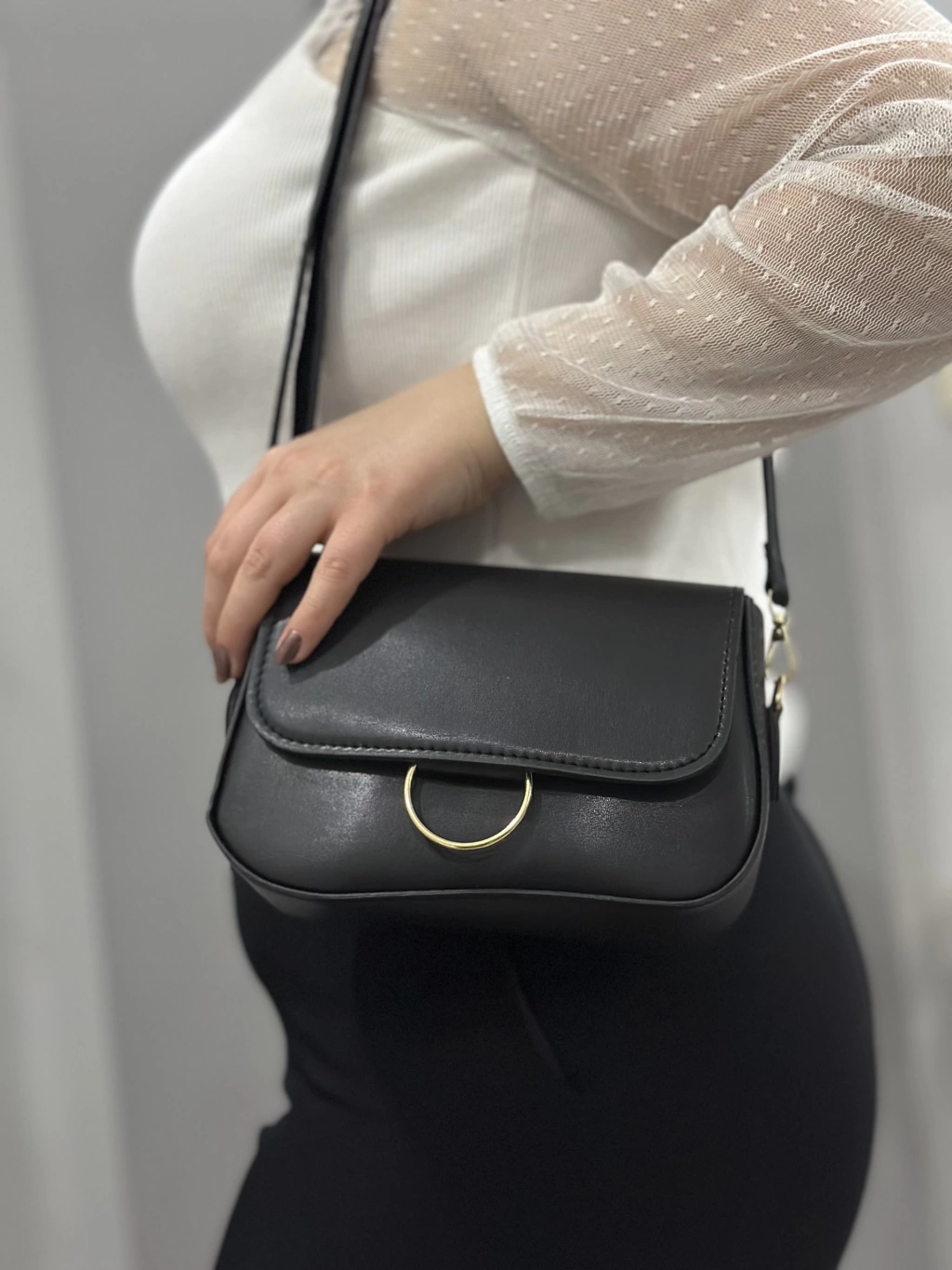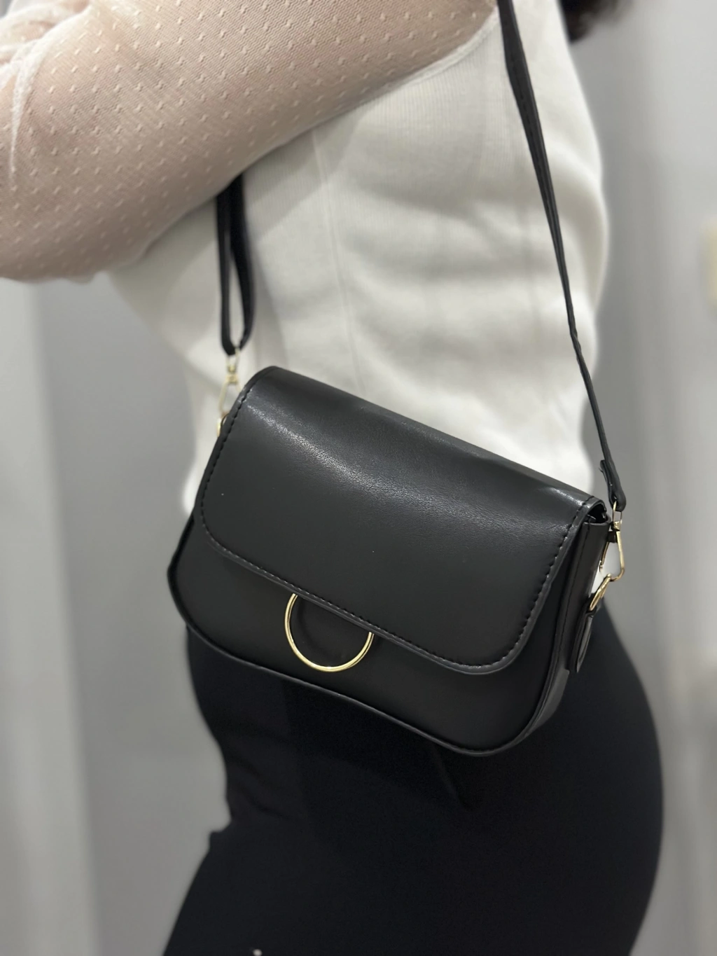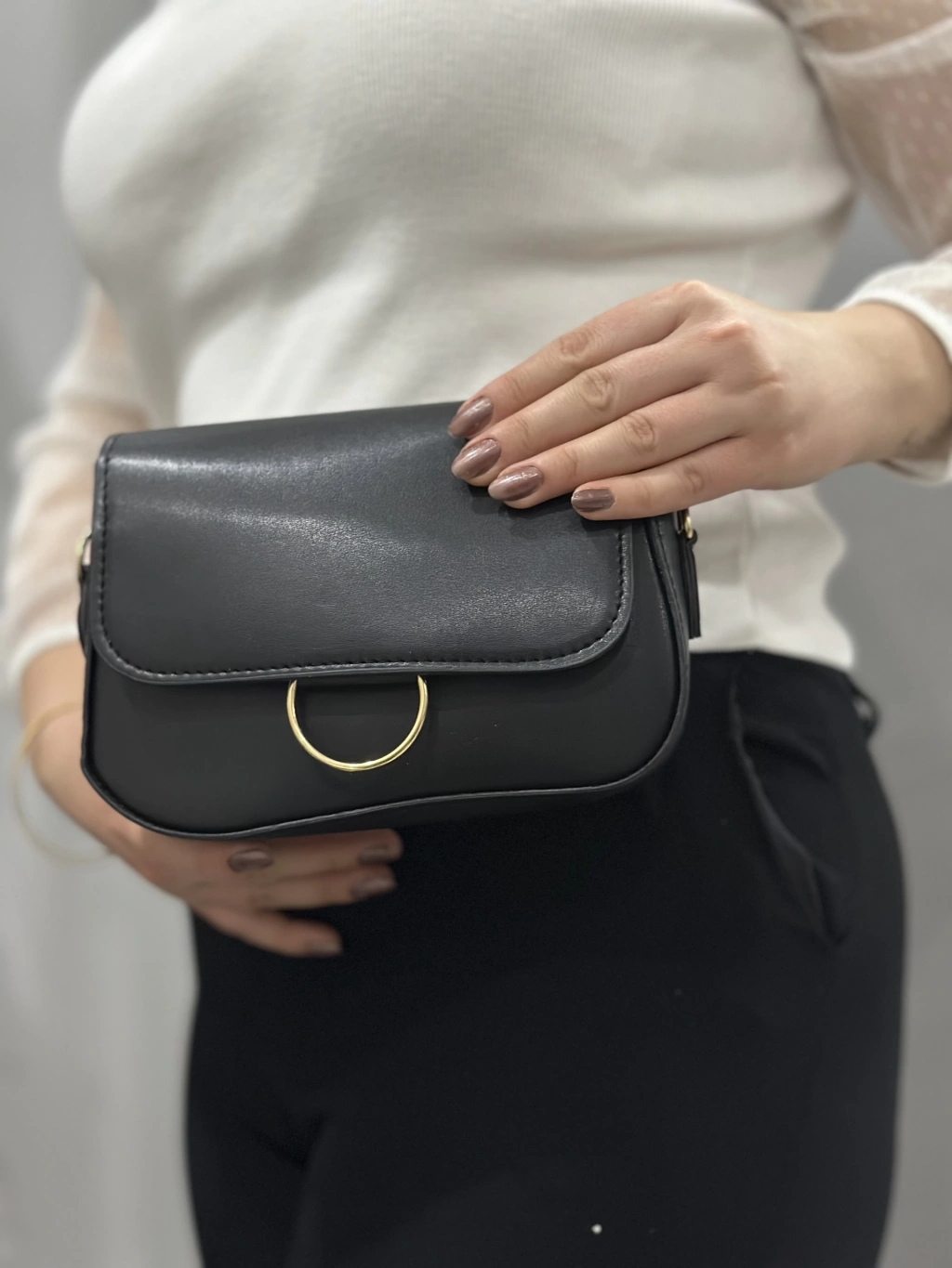 Klasik kapaklı siyah cilt çanta
