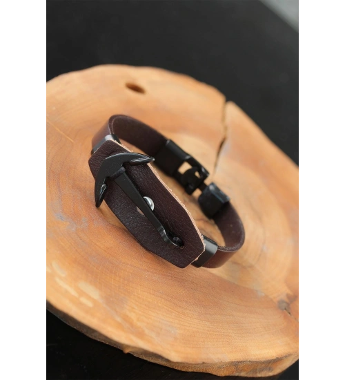 Kombin şıklığınızı Siyah Deniz Çapalı Çelik Aksesuarlı Kahverengi Deri Erkek Bileklik ile yansıtın.