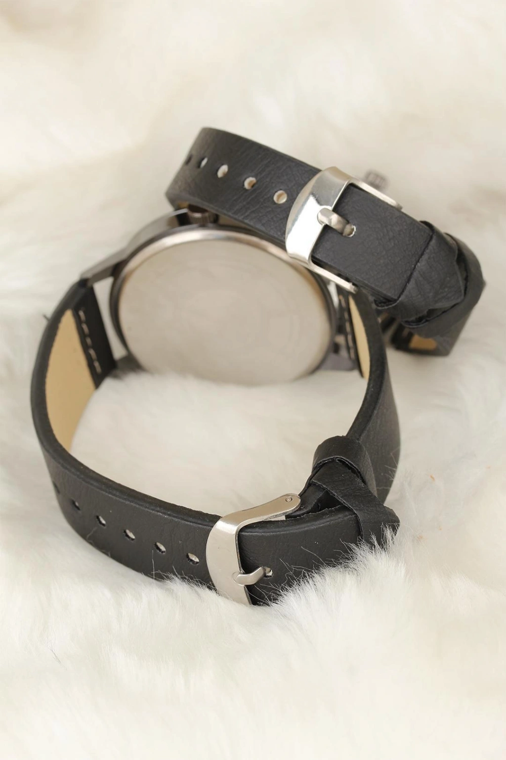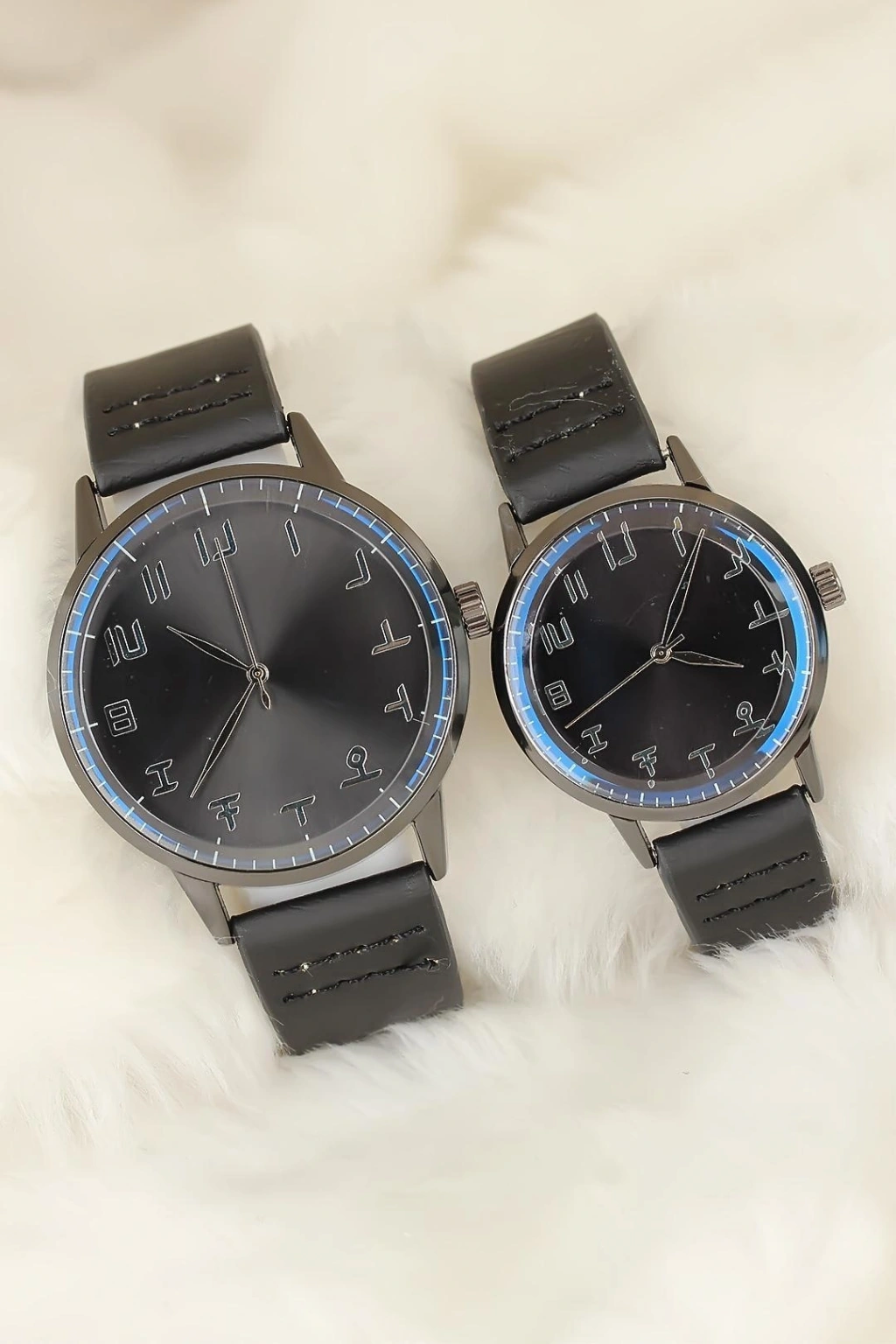 Siyah Deri Kordonlu Füme Renk Metal Kasa Sevgili Saatleri