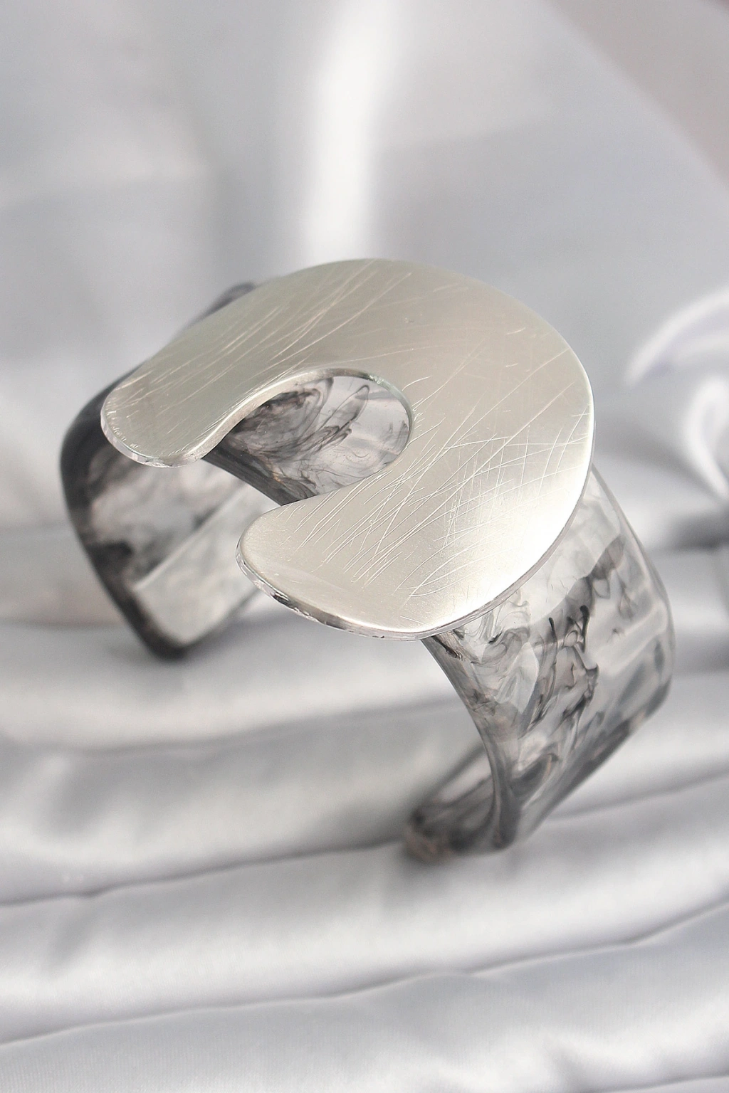 Siyah Mermer Desen Akrilik Plaka Vintage Kadın Bilezik