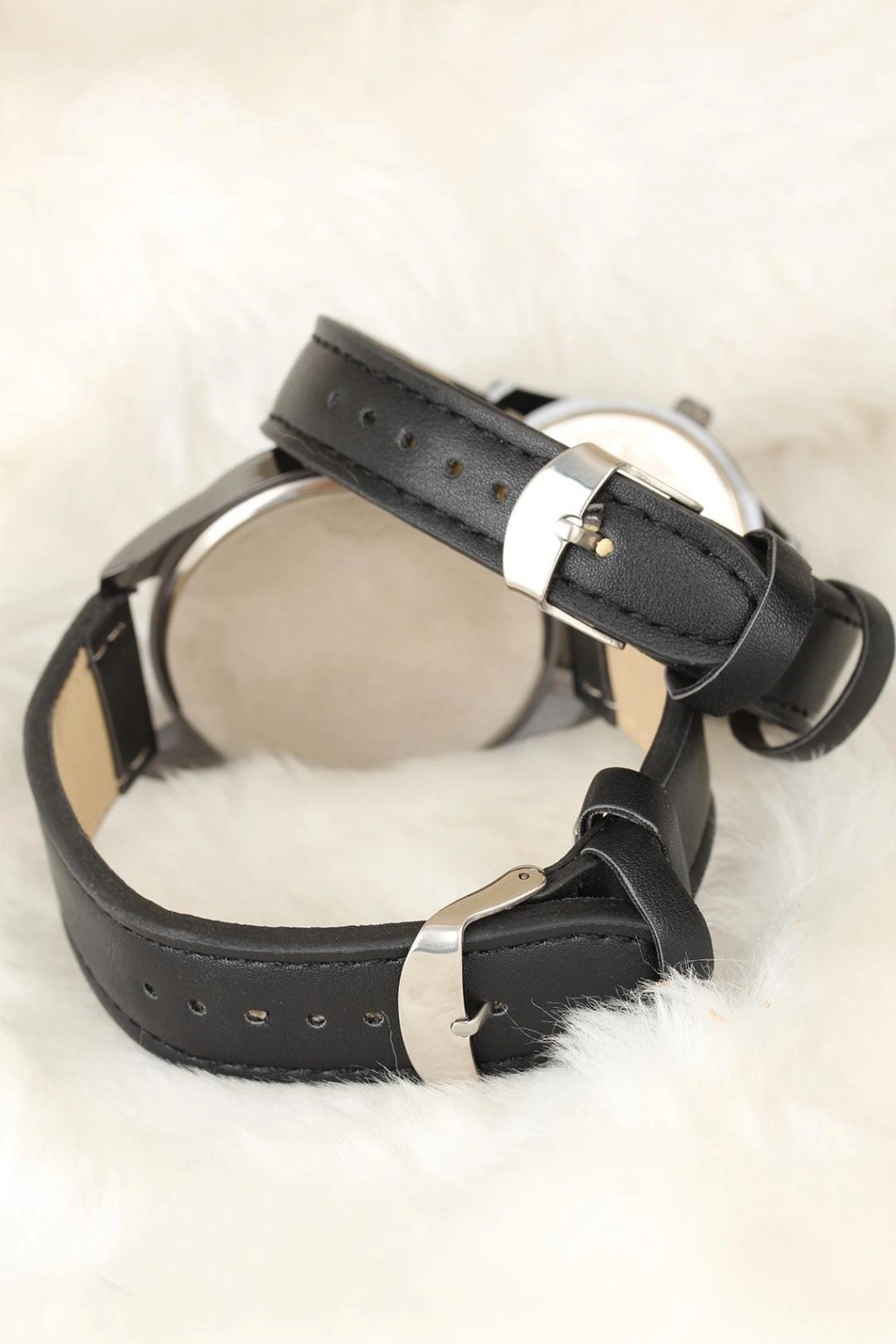 Siyah Renk Deri Kordonlu İstanbul Tasarımlı Sevgili Saatleri
