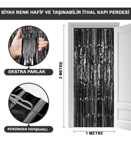 Siyah Renk Ekstra Metalize Parlak Saçaklı Arka Fon Perde İthal A Kalite 1x2 Metre NessiWorld