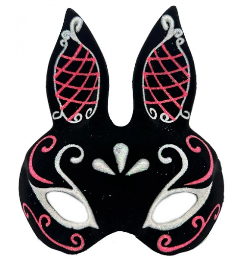 Siyah Renk Kırmızı Beyaz Simli Siyah Süet Kaplama Tavşan Maskesi 18x16 cm