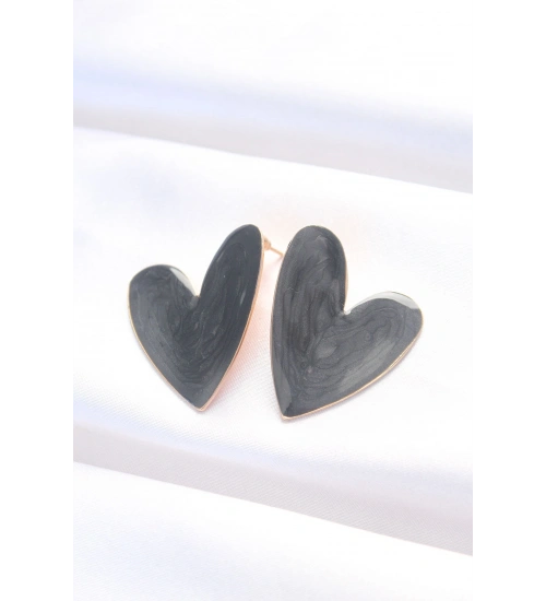 Siyah Renk Mineli Kalp Küpe
