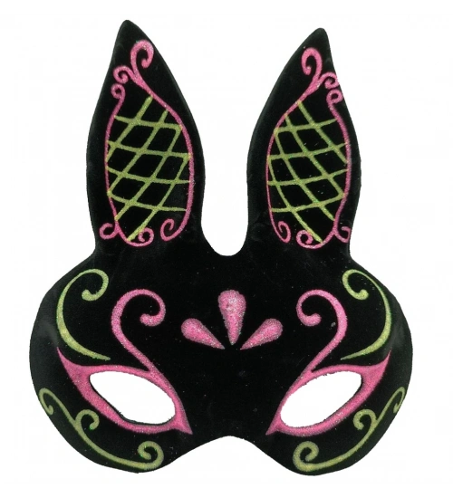Siyah Renk Pembe Gold Simli Siyah Süet Kaplama Tavşan Maskesi 18x16 cm