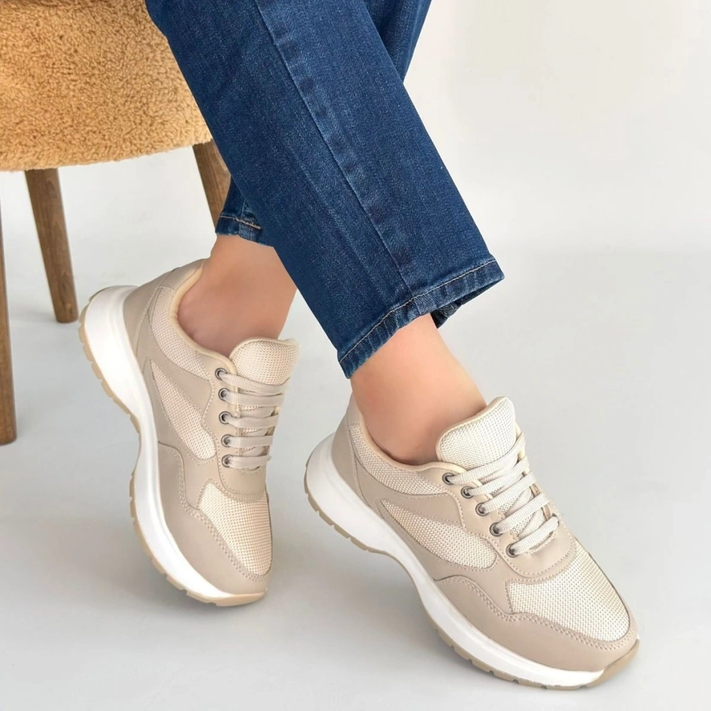 Belan Bej Triko Bağcıklı Spor Ayakkabı